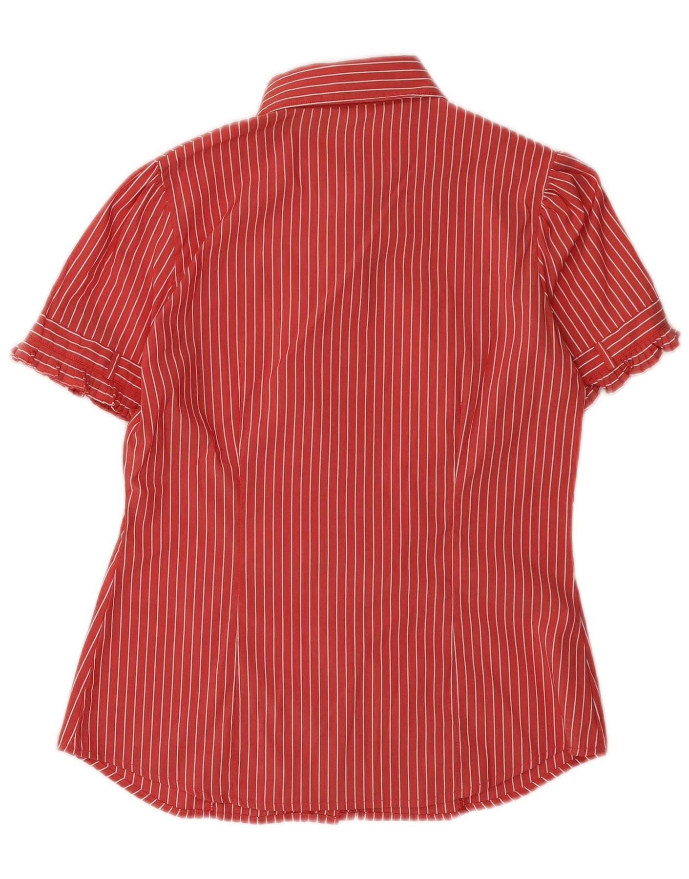 Damska koszula z krótkim rękawem BENETTON UK 14 w średnie czerwone prążki