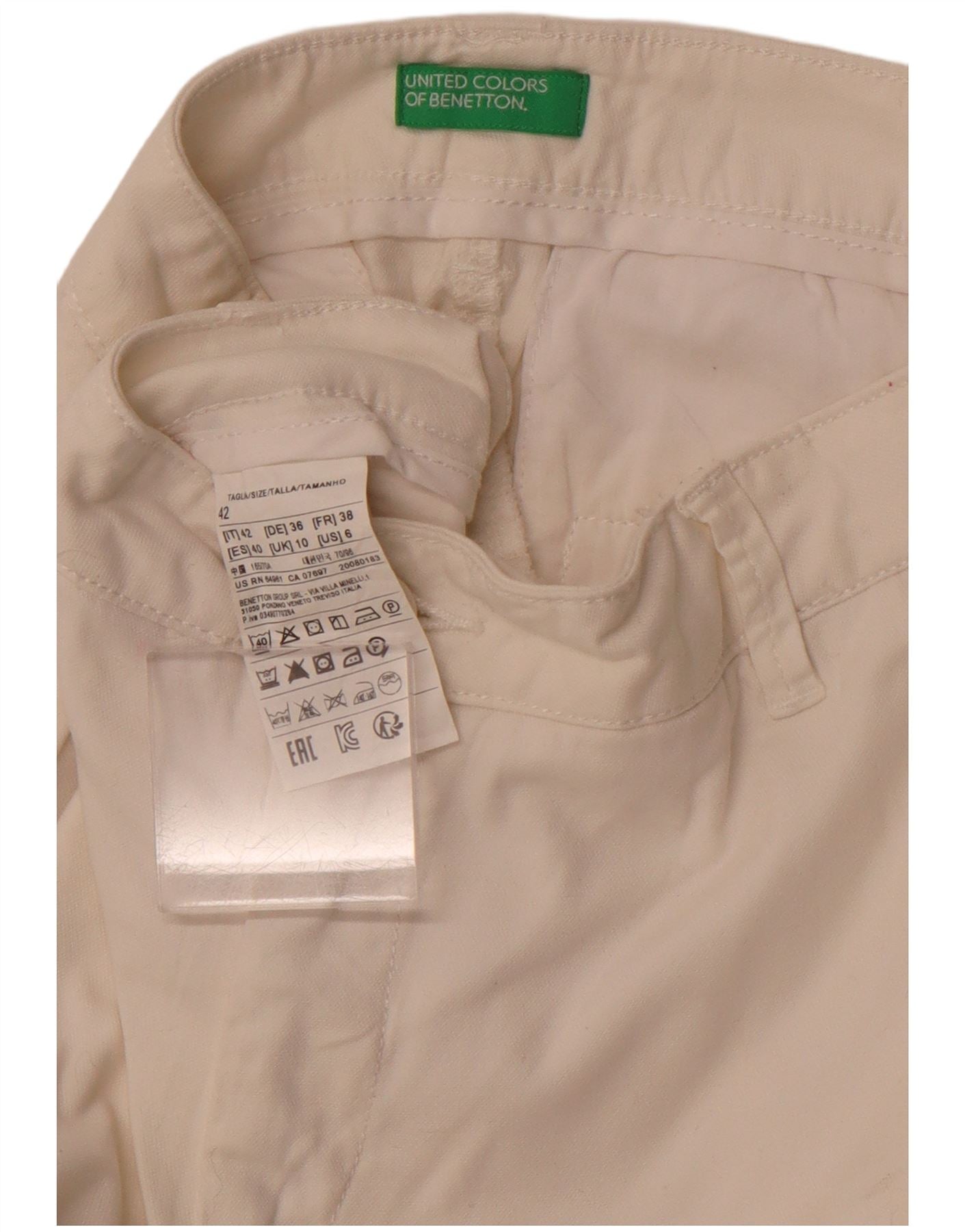 Spodnie damskie BENETTON Straight Chino UK 10 Small W28 L28 Biała bawełna