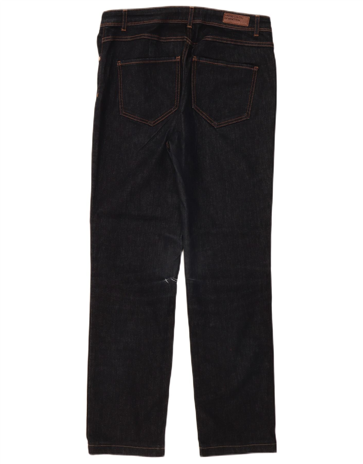 BENETTON Damskie proste dżinsy W31 L30 Granatowe, bawełniane
