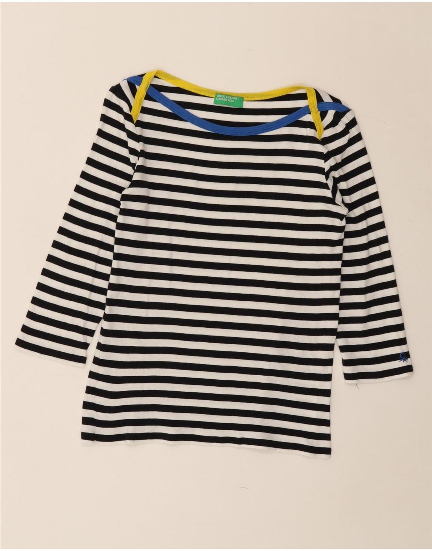 Home > Vintage odzież Benettona > Damskie > Top damski Benetton z rękawem 3/4, UK 8, w małe granatowe paski