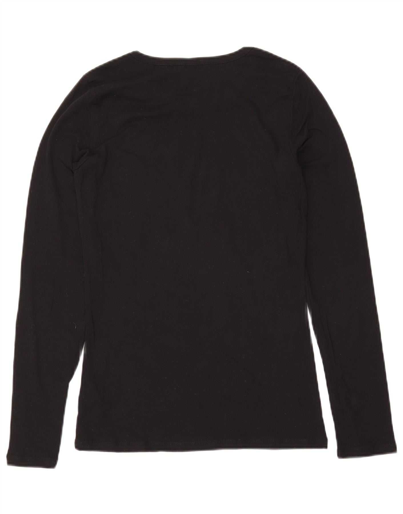 Damski top BENETTON z długim rękawem UK 14, duży, czarny, bawełniany