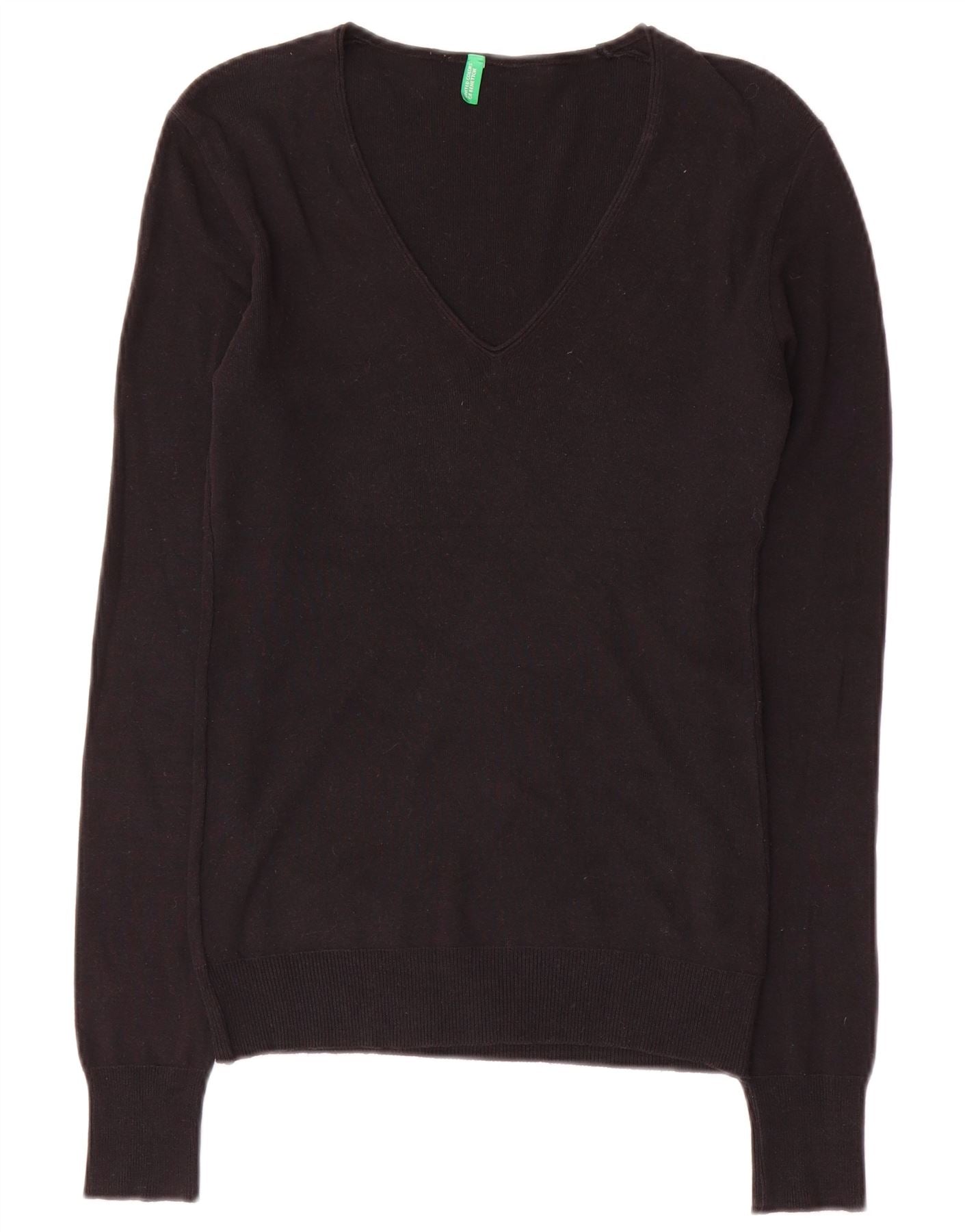 BENETTON Damski sweter z dekoltem w kształcie litery V, UK 10, mały, czarny