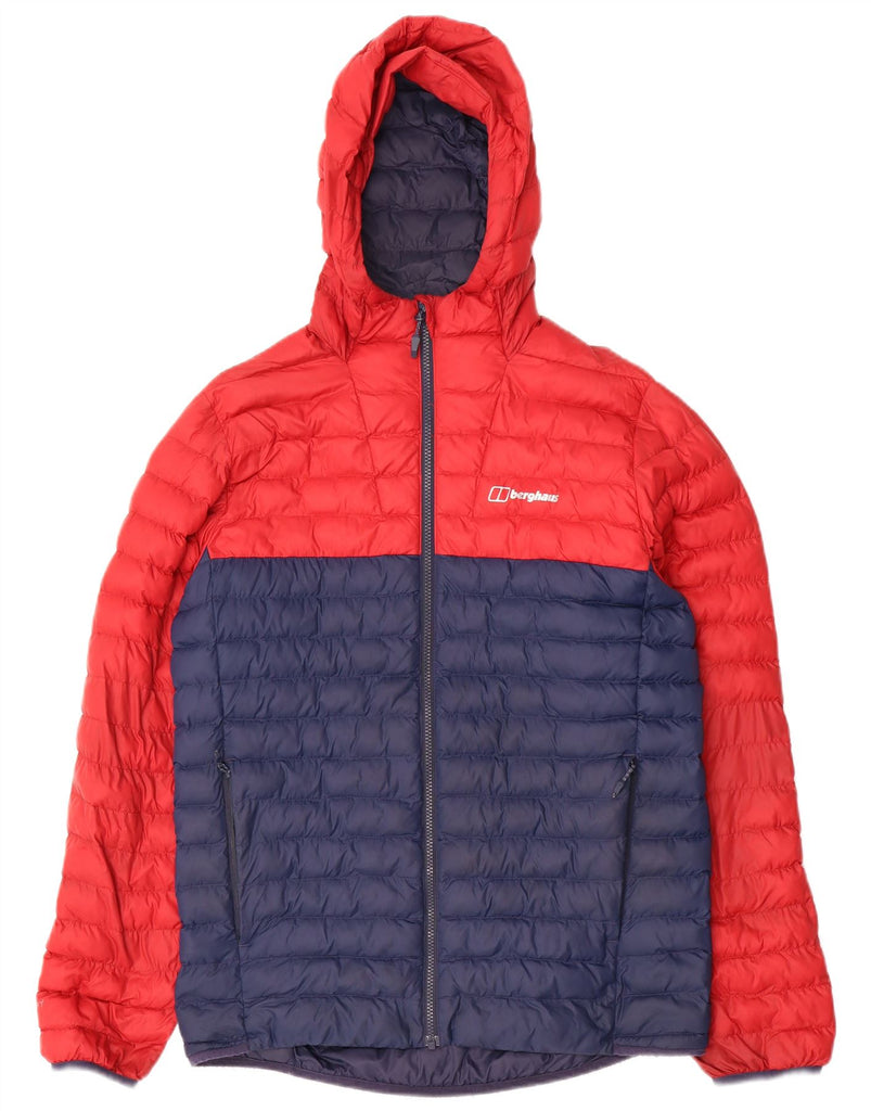 BERGHAUS Mens Hooded Padded Jacket UK 38 Medium Red Colourblock Polyamide