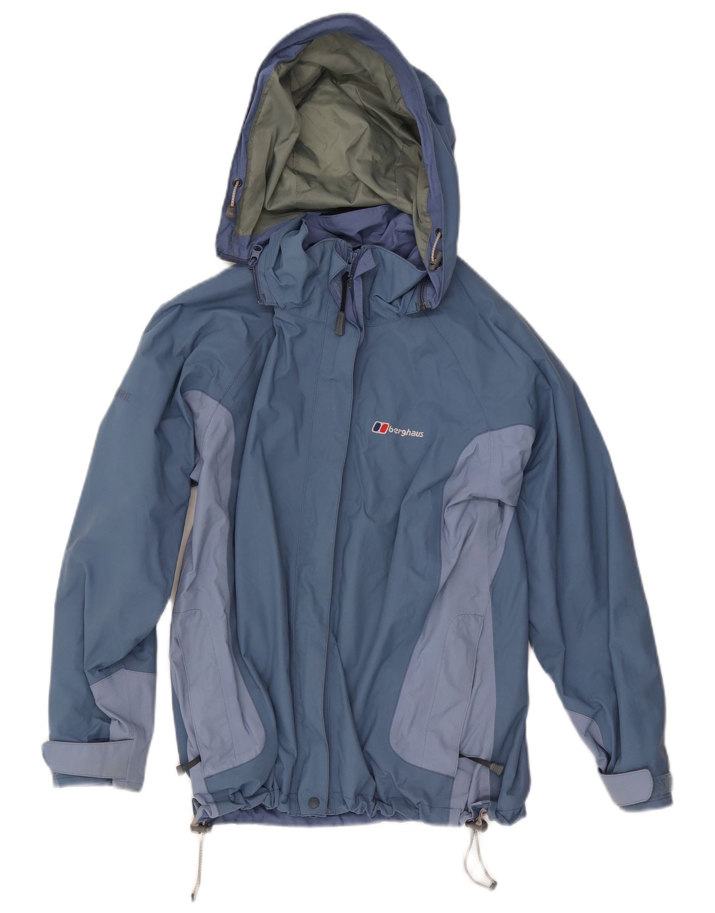 Damska kurtka przeciwdeszczowa z kapturem BERGHAUS UK 10, mały, niebieski nylon w bloki kolorów