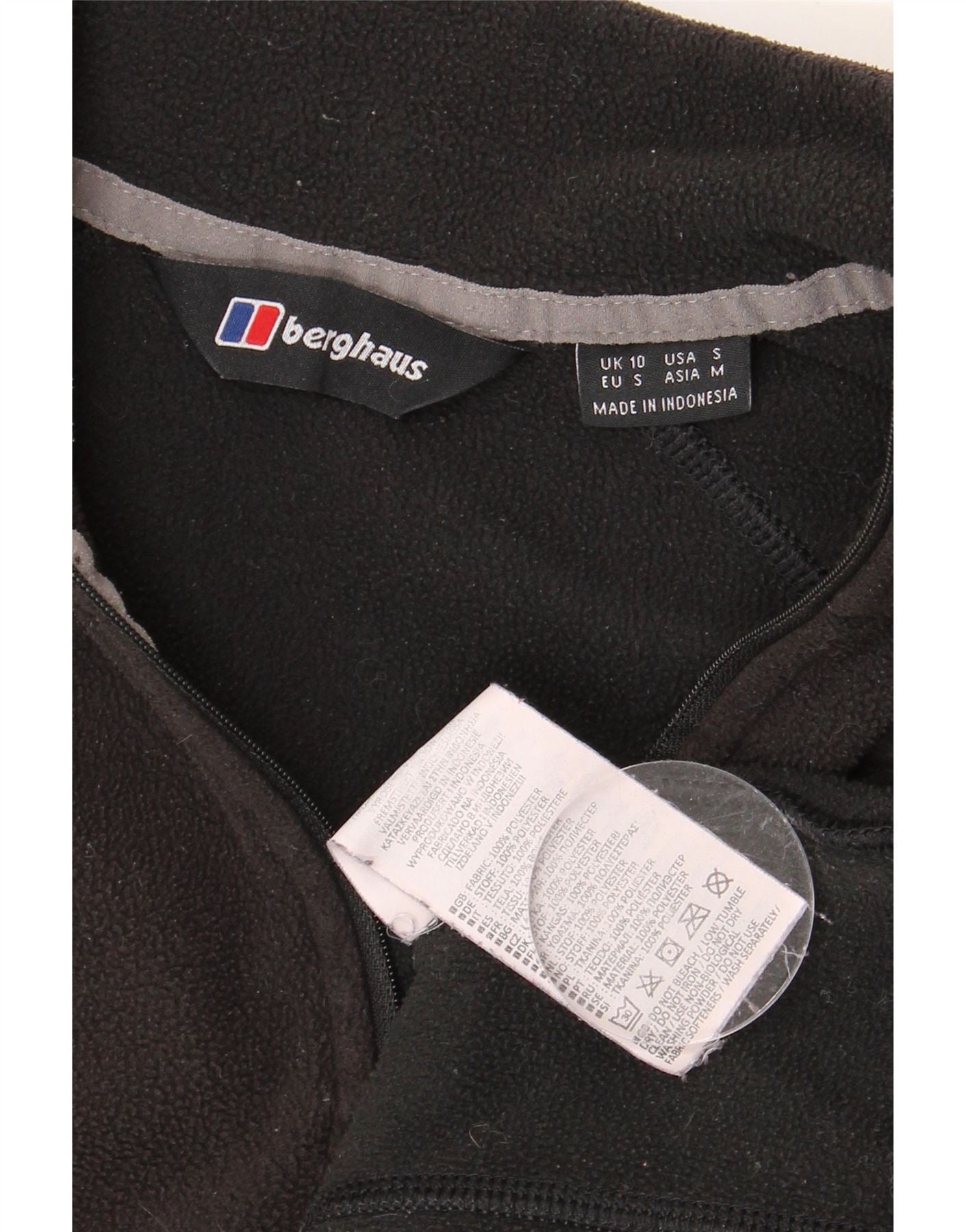 Damski sweter polarowy BERGHAUS z zamkiem błyskawicznym UK 10, mały, czarny poliester