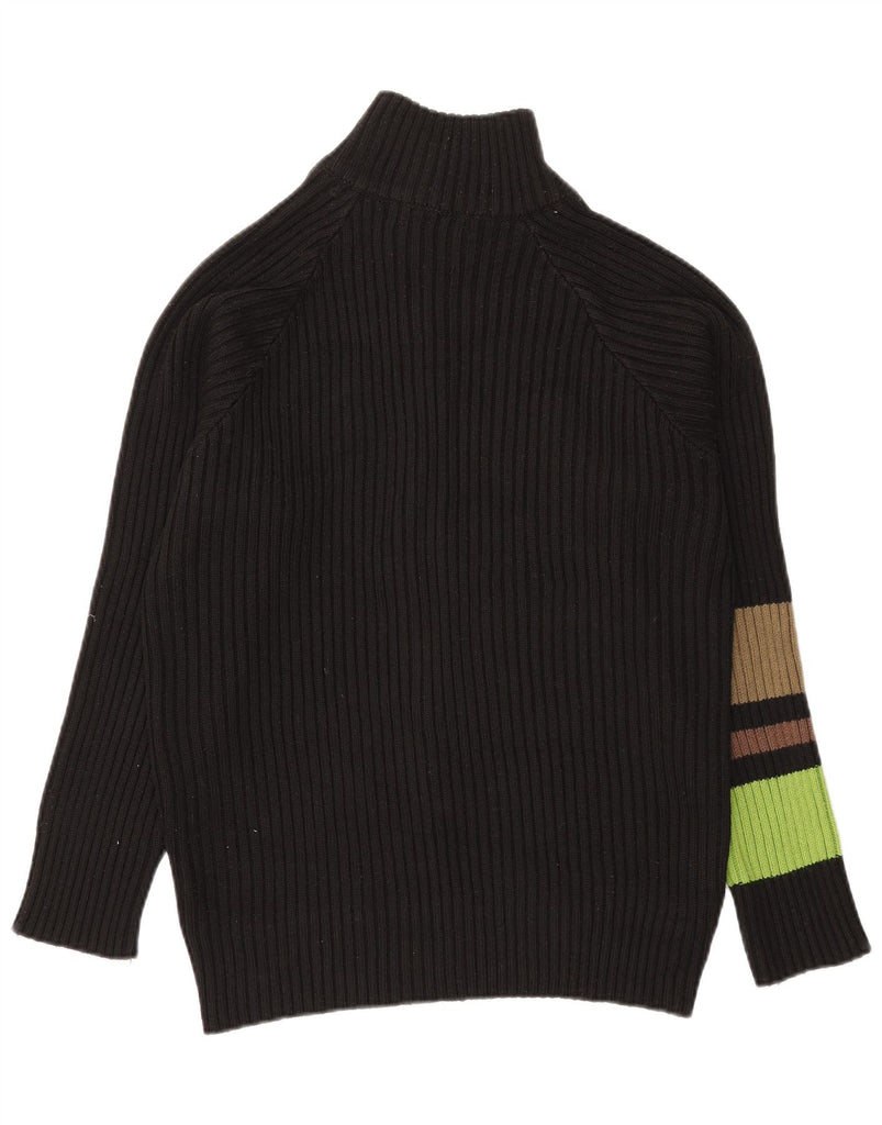 BIKKEMBERGS Mens Graphic Zip Neck Jumper Sweater Medium Black Colourblock