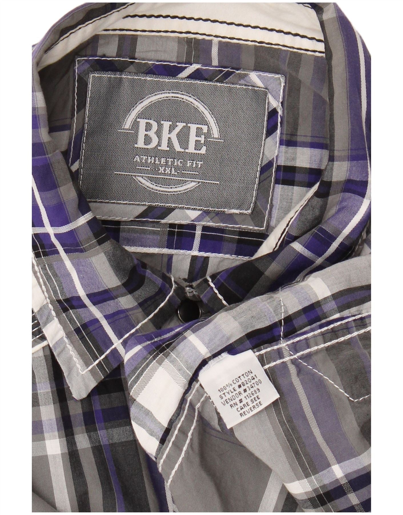 Męska koszula flanelowa BKE o sportowym kroju 2XL, bawełniana w szarą kratkę