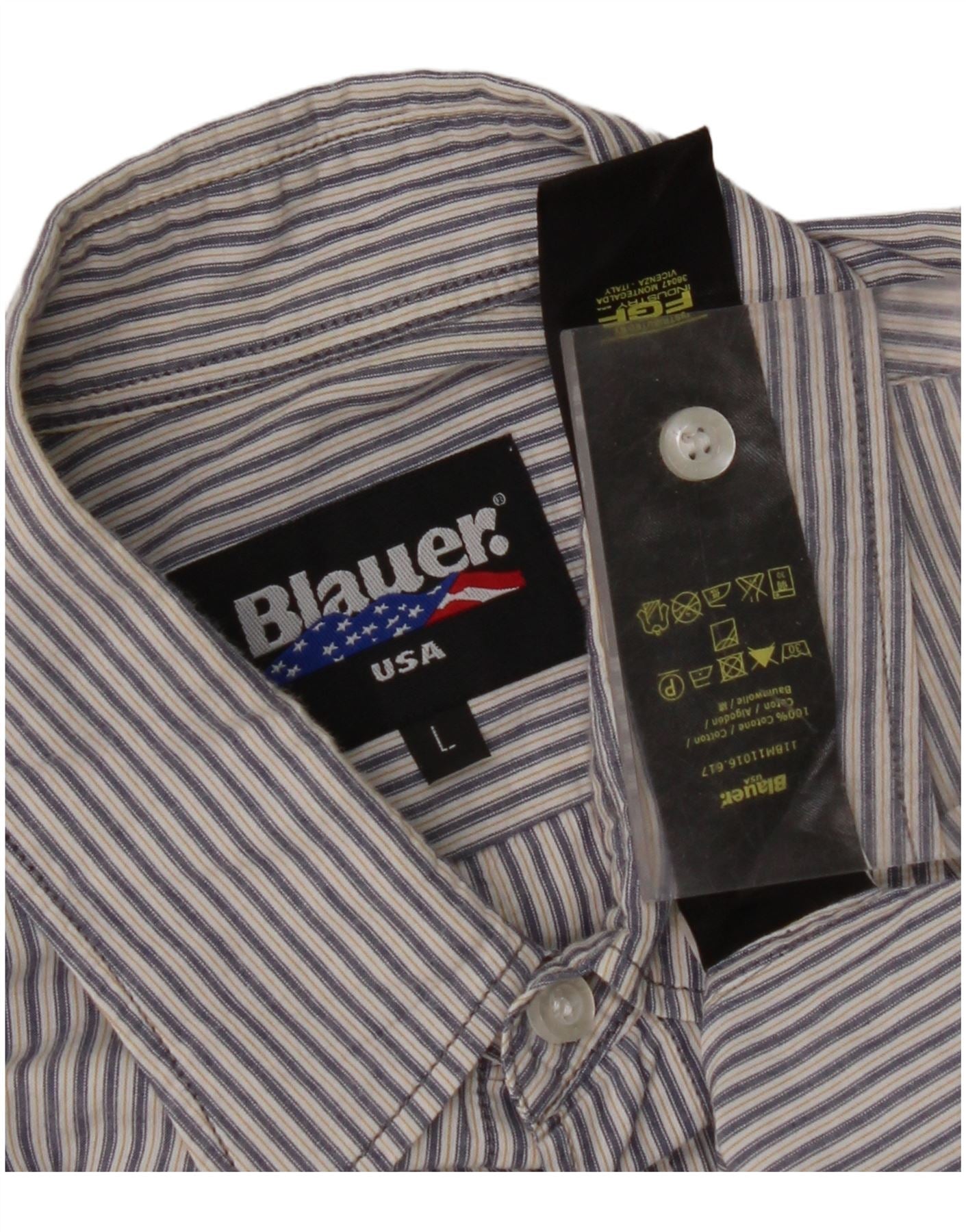 BLAUER Męska koszula wojskowa z krótkim rękawem, duża, niebieska, bawełniana w prążki