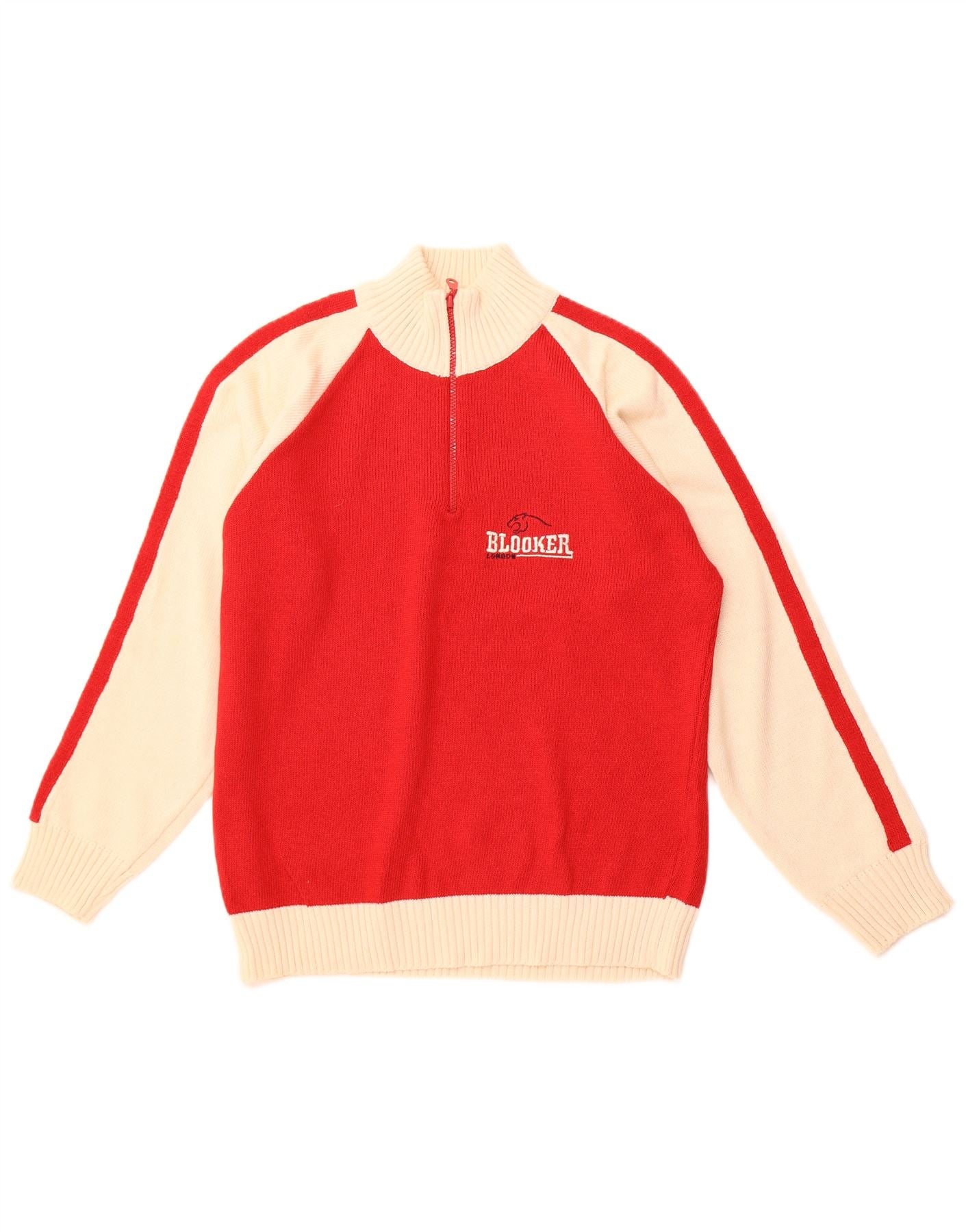 BLOOKER Męski sweter zapinany na zamek, duży, bawełniany, w kolorze czerwonym