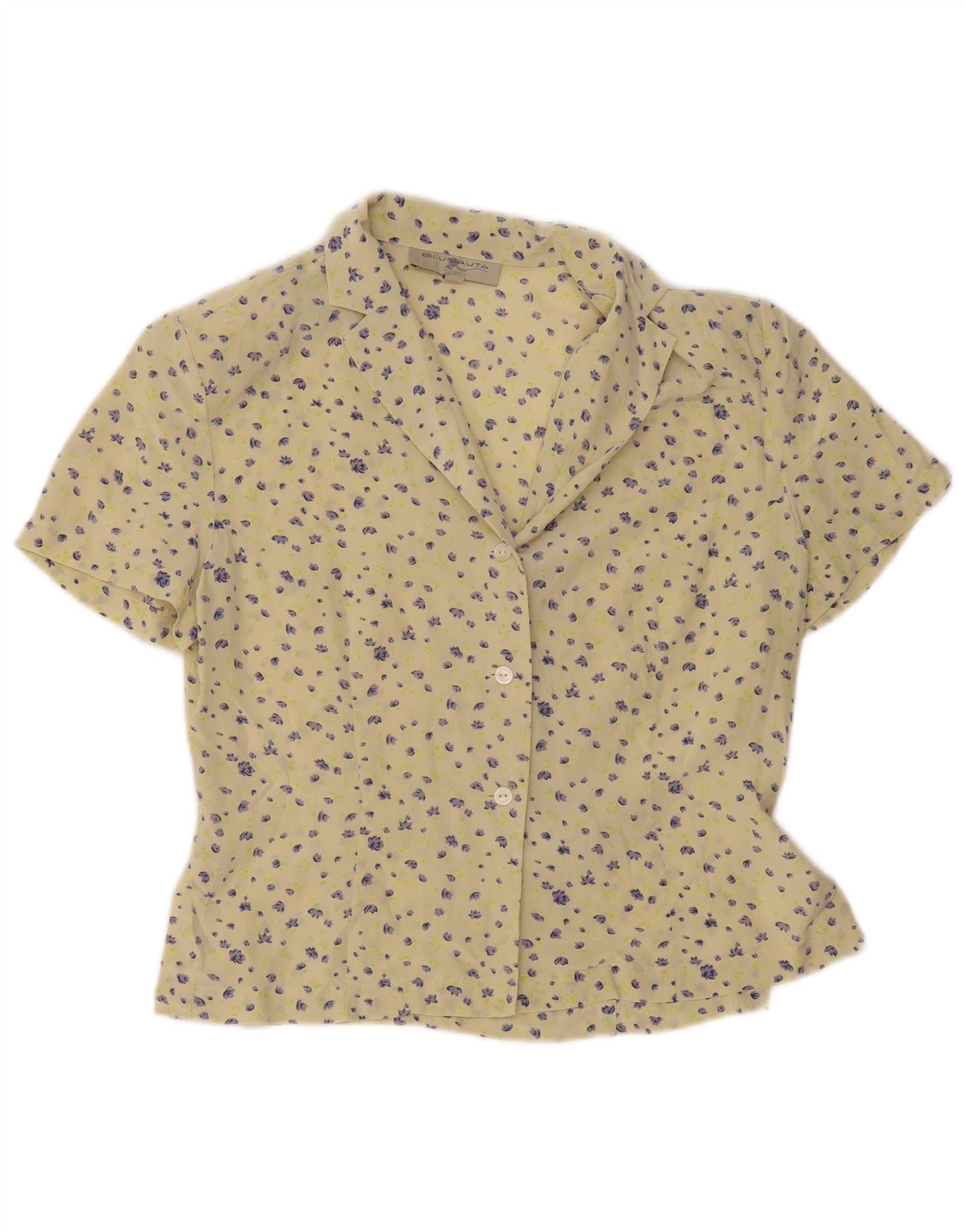 Damska bluzka koszulowa z krótkim rękawem Blunauta IT 42 Średni żółty kwiatowy jedwab