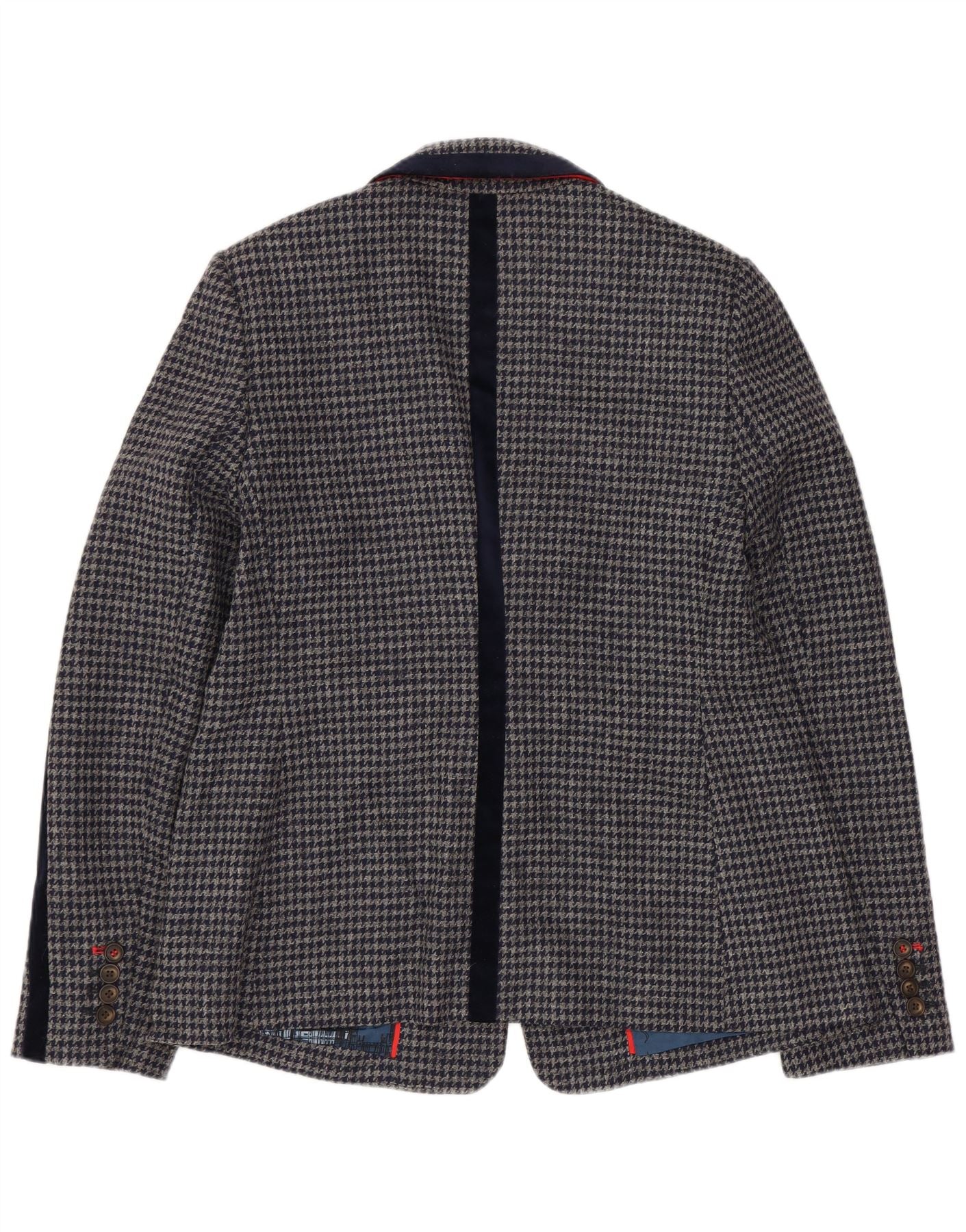 BODEN Damska marynarka zapinana na 1 guzik UK 14, duża, granatowa, wełniana pepitka