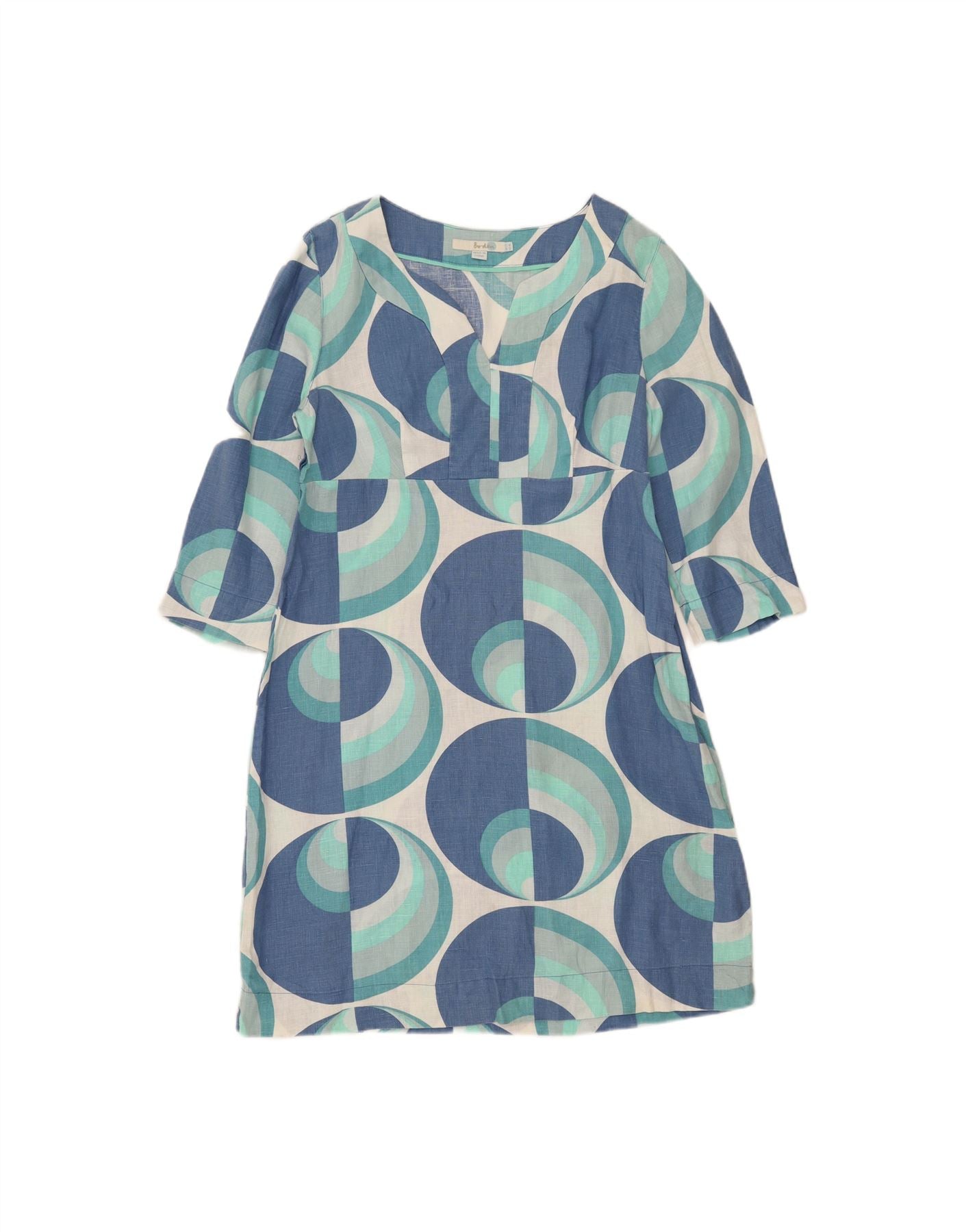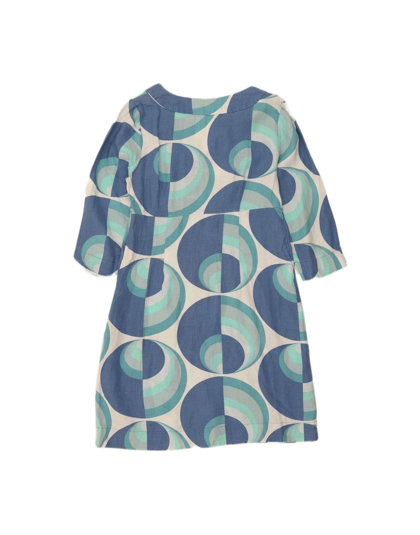 BODEN Womens 3/4 Sleeve A-Line Dress UK 12 Medium Blue Geometric Linen