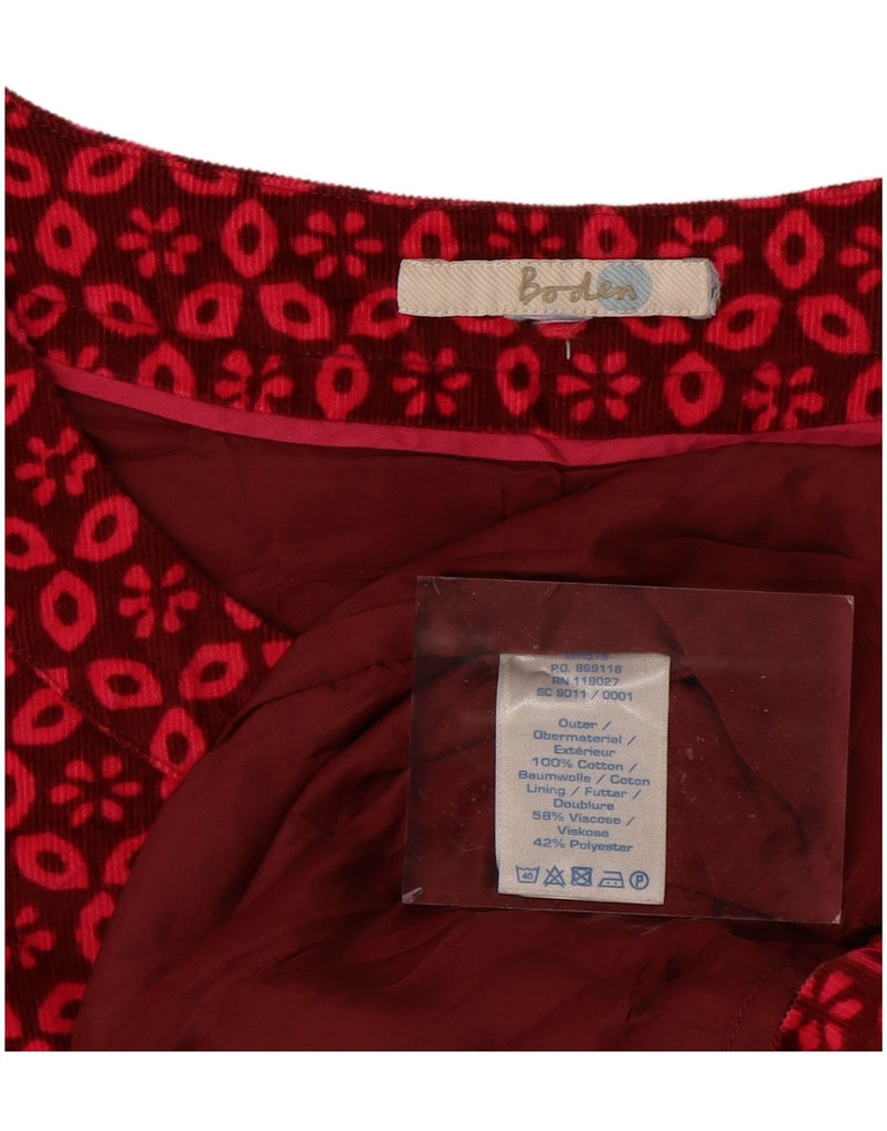 BODEN Womens Corduroy Sheath Dress UK 12 Medium Red Floral Cotton
