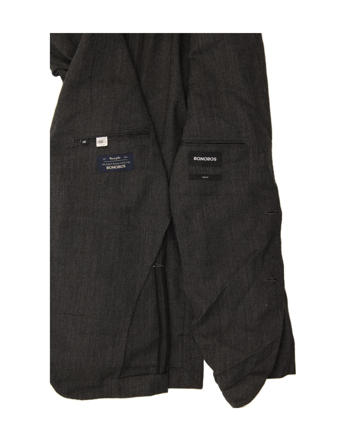 BONOBOS Mens Slim Fit 2 Button Blazer Jacket UK 40 Large Grey Wool Classic