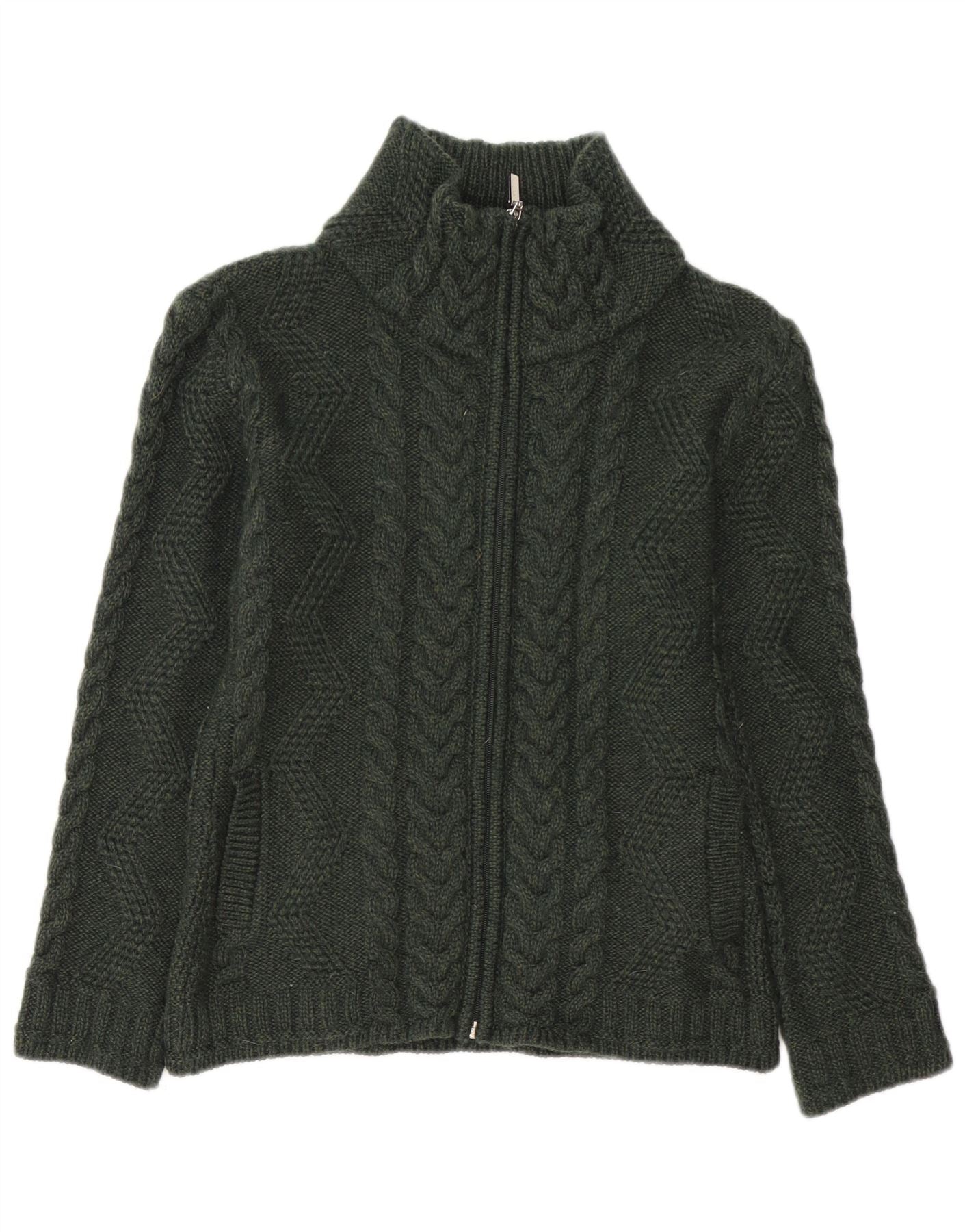 BOSTON IRISH Damski sweter kardigan UK 10 Small Green Merino Wełna