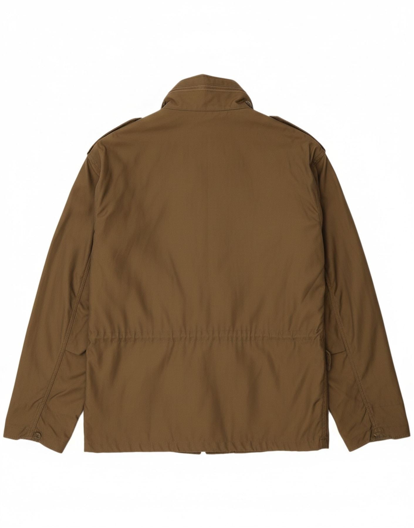 - AI Description: This Brandit men’s military jacket features a robust polyester-cotton blend shell and a soft cotton lining. It is designed with a practical full zip closure and a collared neckline. The integrated hood and long sleeves provide versatile coverage. Multiple functional pockets and adjustable straps add to its utility. With a regular fit, it offers comfort and a rugged aesthetic for daily wear.