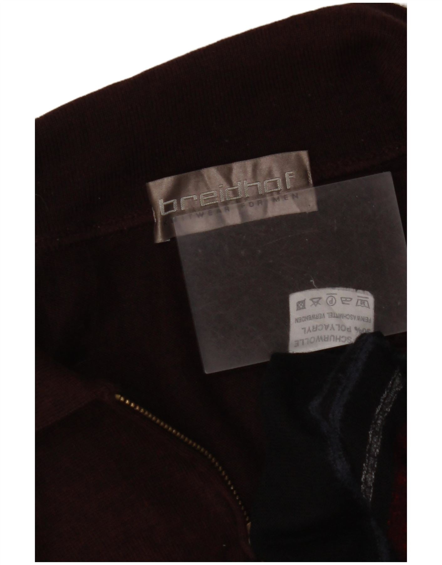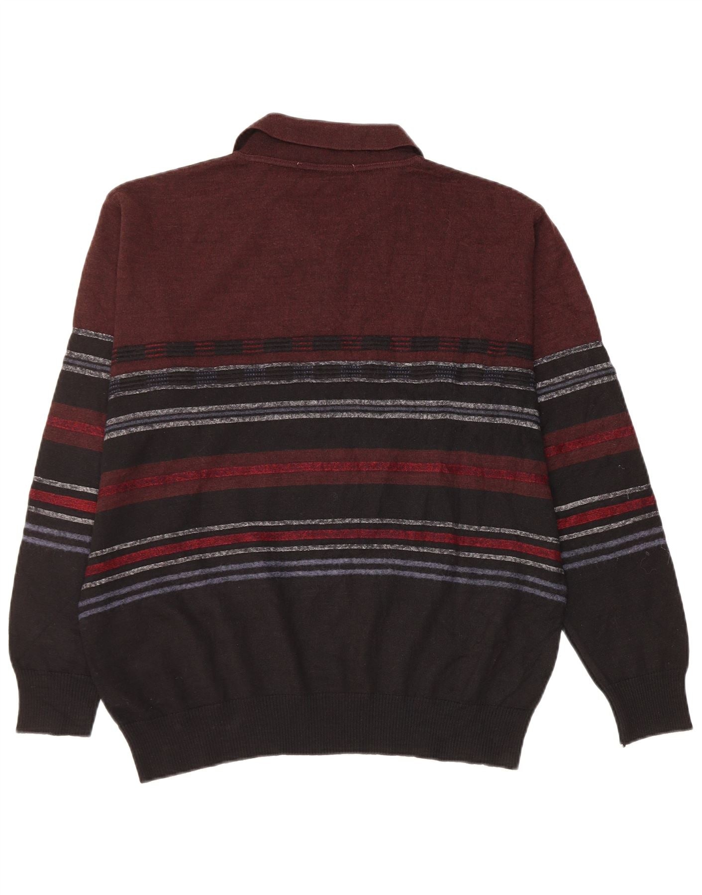 BREIDHOF Męski sweter polo z dużym dekoltem, wełniany w bordowe paski