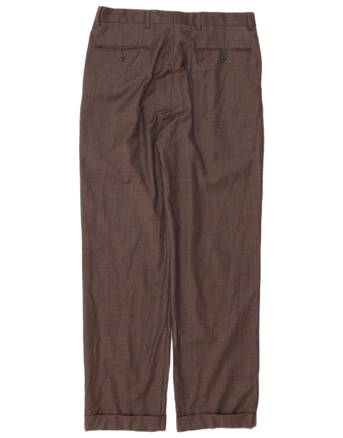 Męskie spodnie garniturowe BROOKS BROTHERS Madison W33 L31 Brązowa wełniana krata