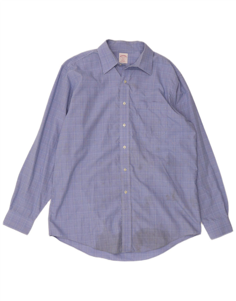 BROOKS BROTHERS Mens Regular Fit Shirt Size 16 4/5 Large Blue Check Cotton