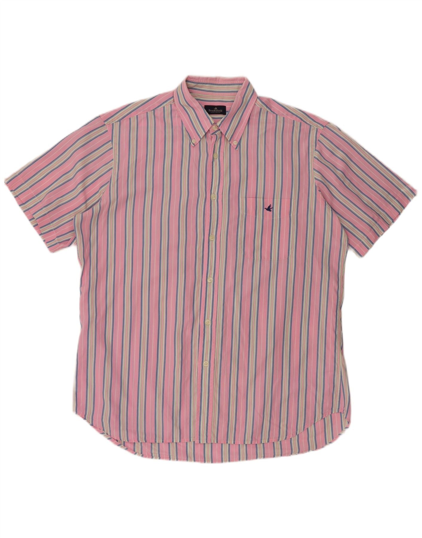 BROOKSFIELD Mens Short Sleeve Shirt Size 42 Large Pink Striped