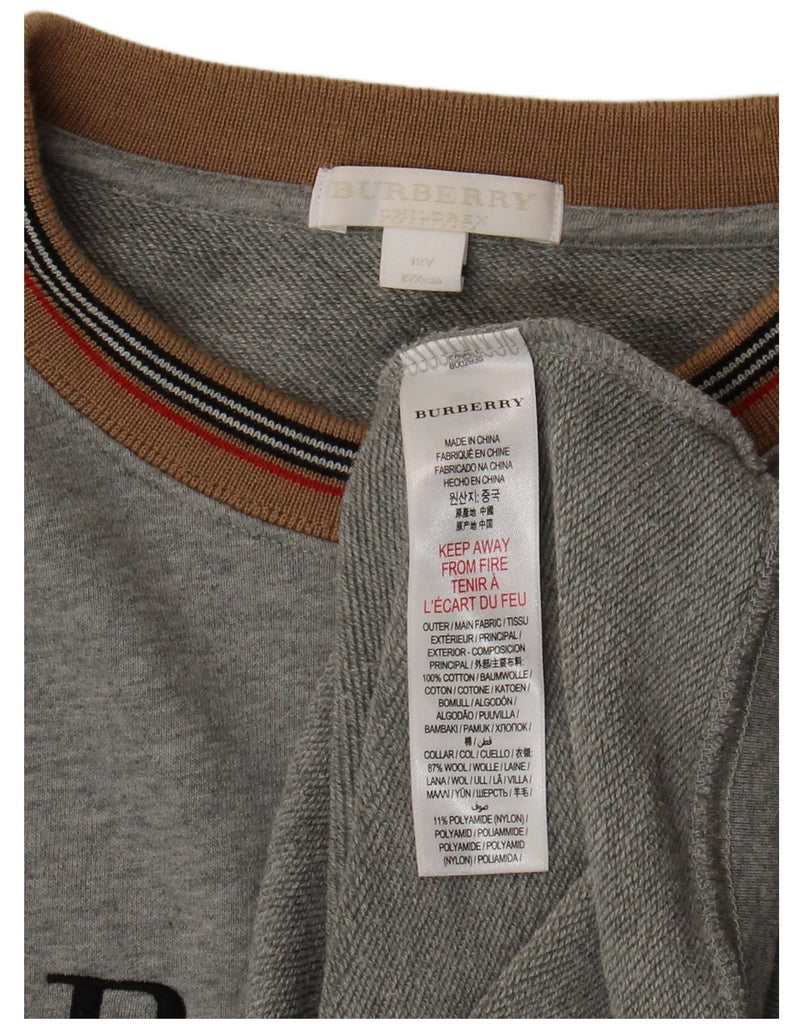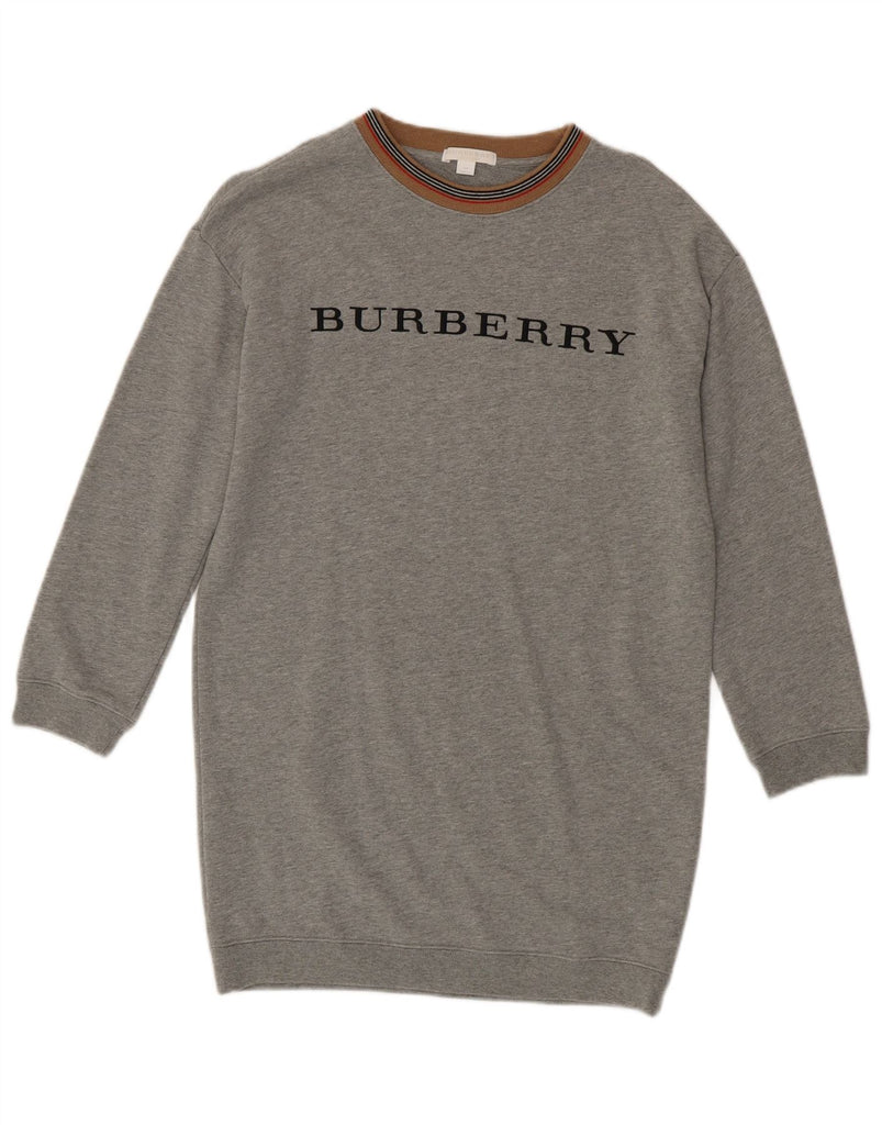 BURBERRY Girls Graphic Sweatshirt Jumper Dress 11-12 Years Grey Cotton