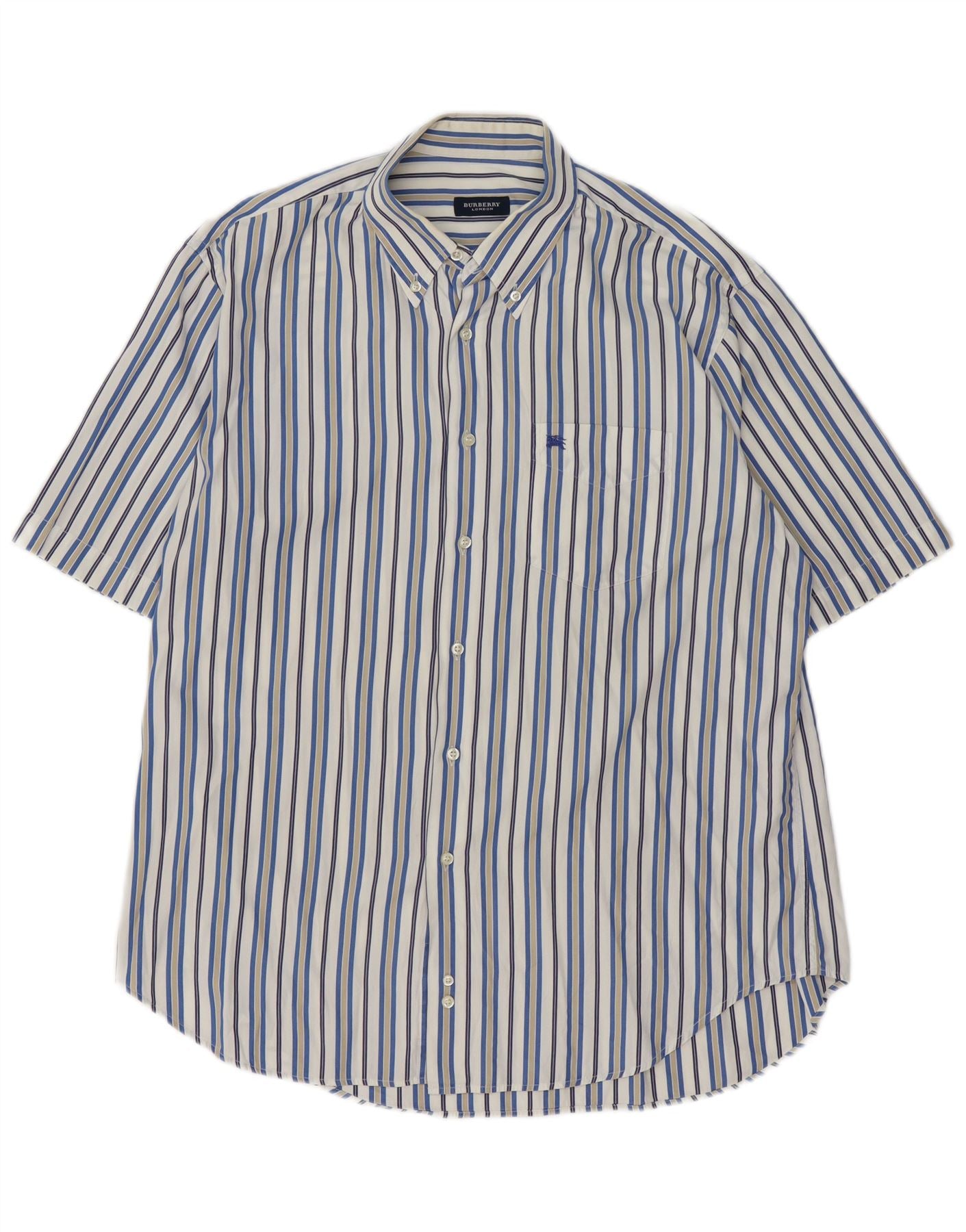 Home > Odzież Burberry w stylu vintage > Męskie > Koszule > Męska koszula z krótkim rękawem Burberry XL, biała, bawełniana w prążki