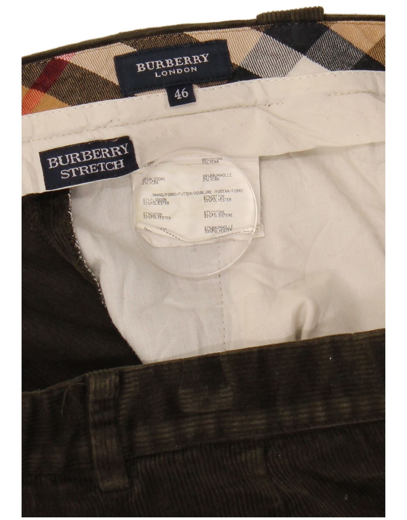 BURBERRY Mens Stretch Pegged Corduroy Trousers IT 46 Small W34 L29 Khaki