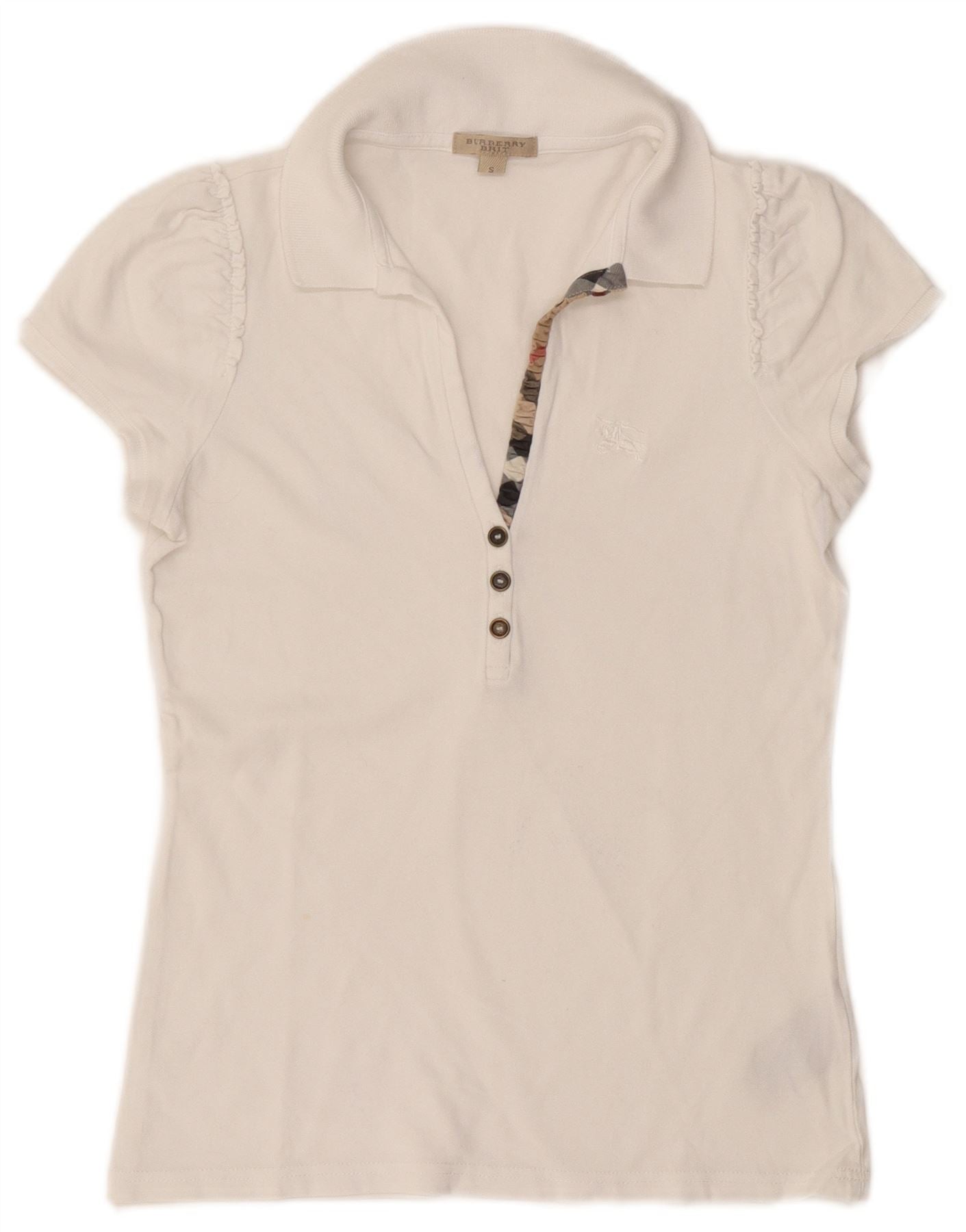 BURBERRY Womens BRIT Polo Shirt UK 10 Small White Cotton