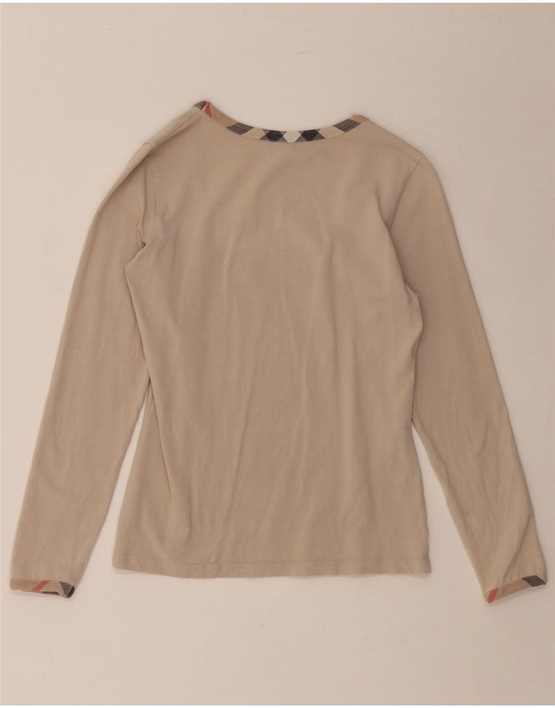 BURBERRY Womens Crop Top Long Sleeve UK 12 Medium Beige Cotton