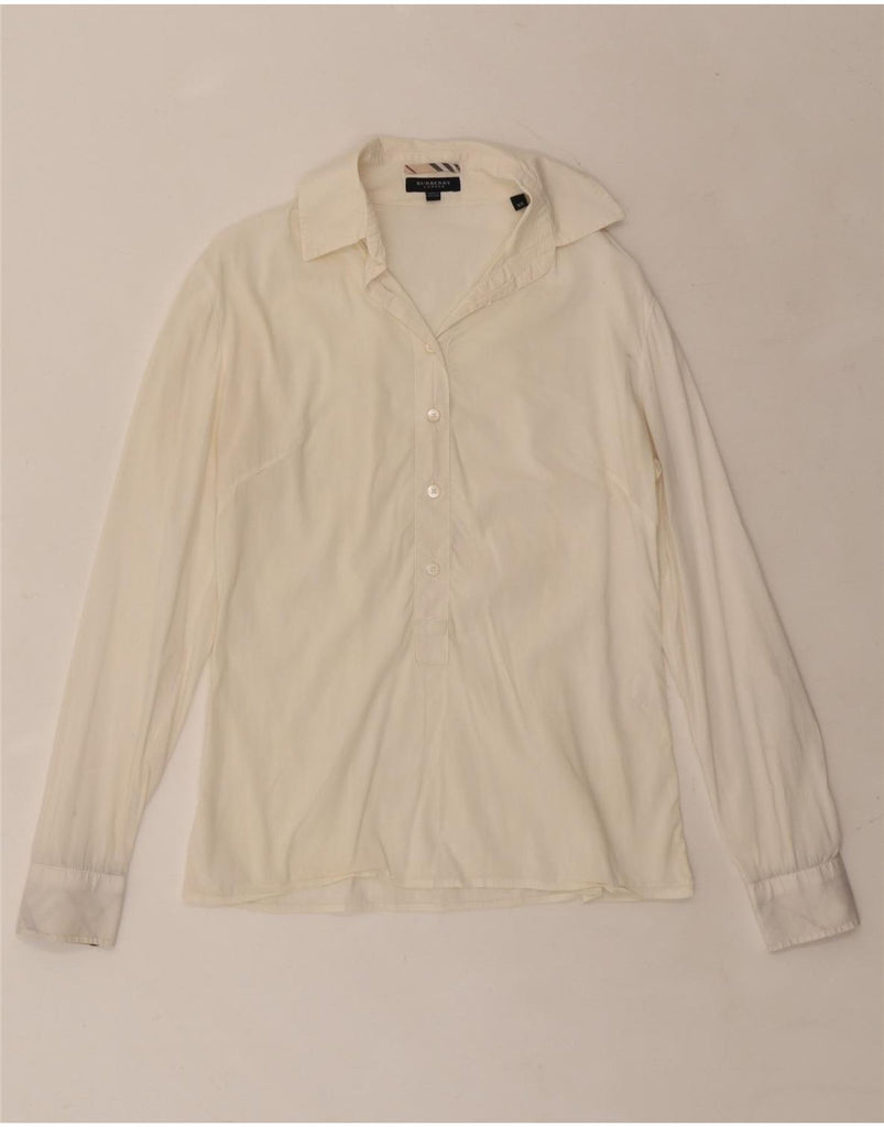 BURBERRY Womens Oversized Pullover Shirt UK 6 XS Off White Cotton