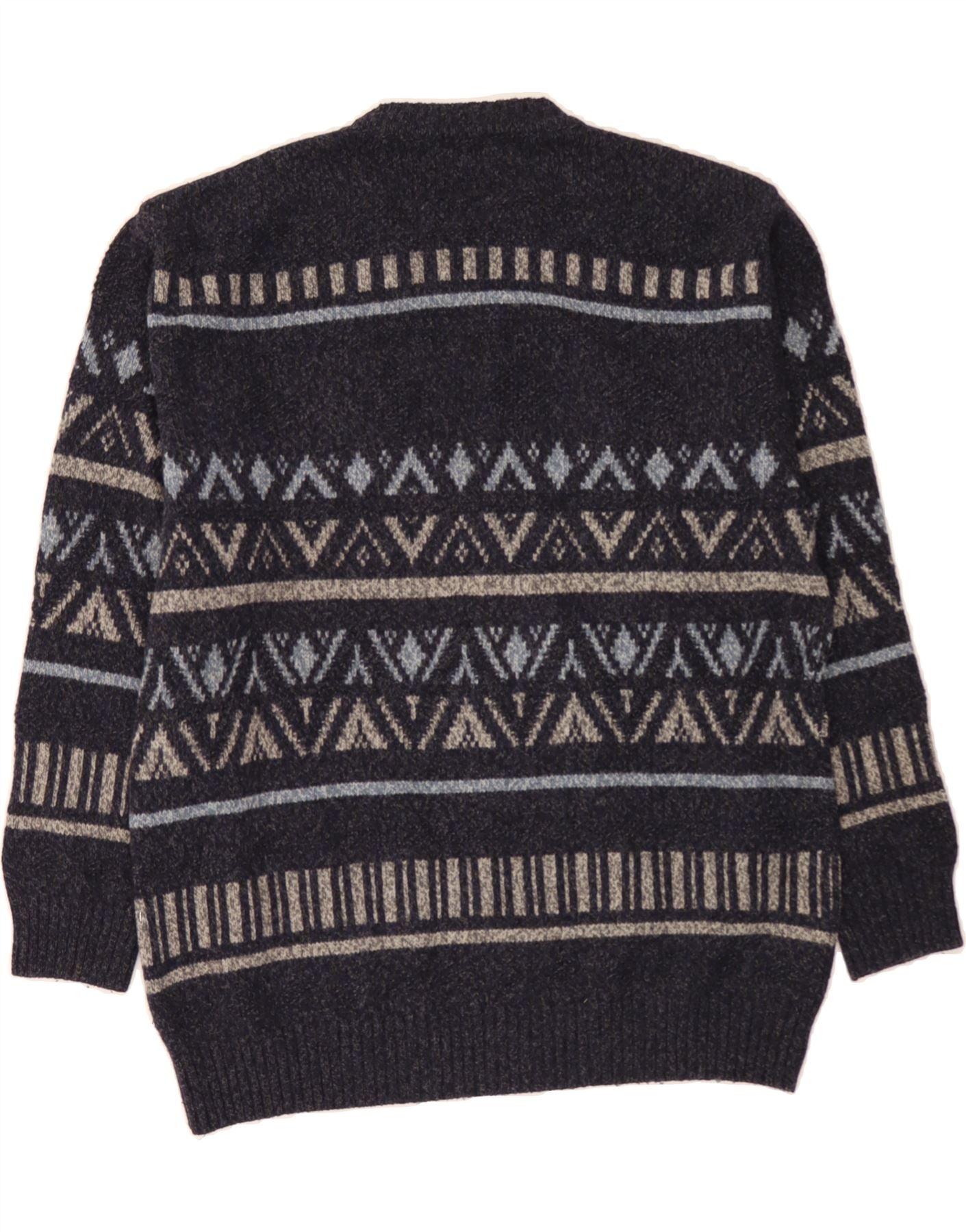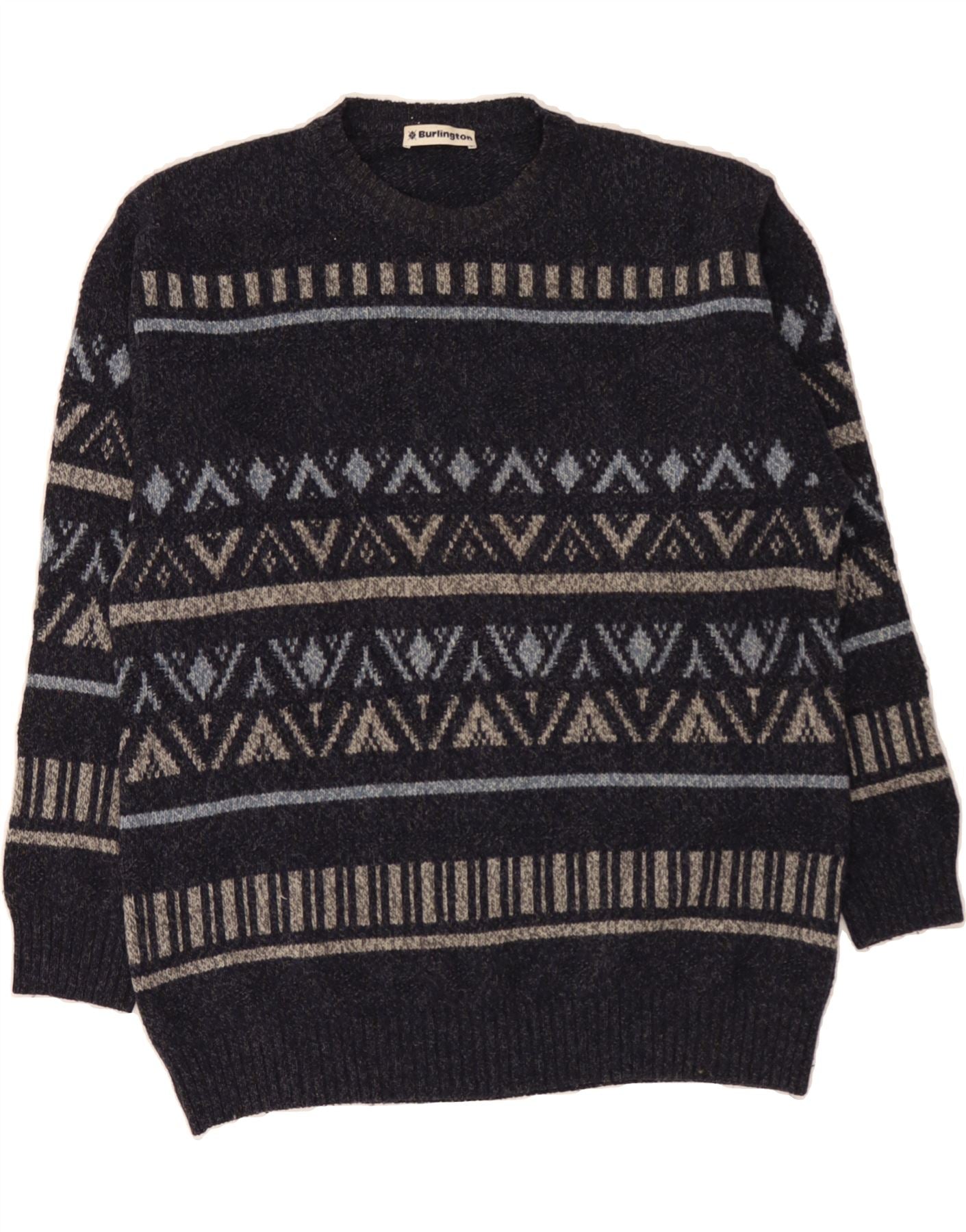 BURLINGTON Mens Crew Neck Jumper Sweater IT 52 Large Navy Blue Fair Isle