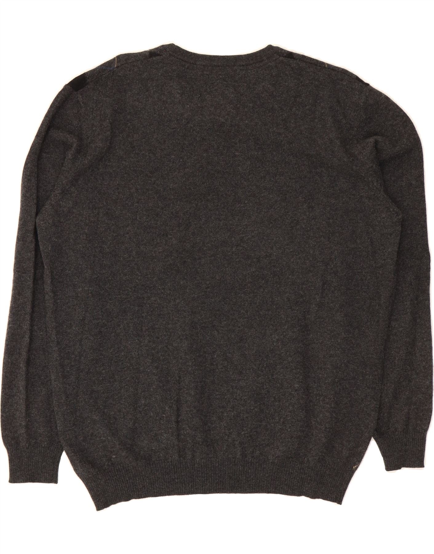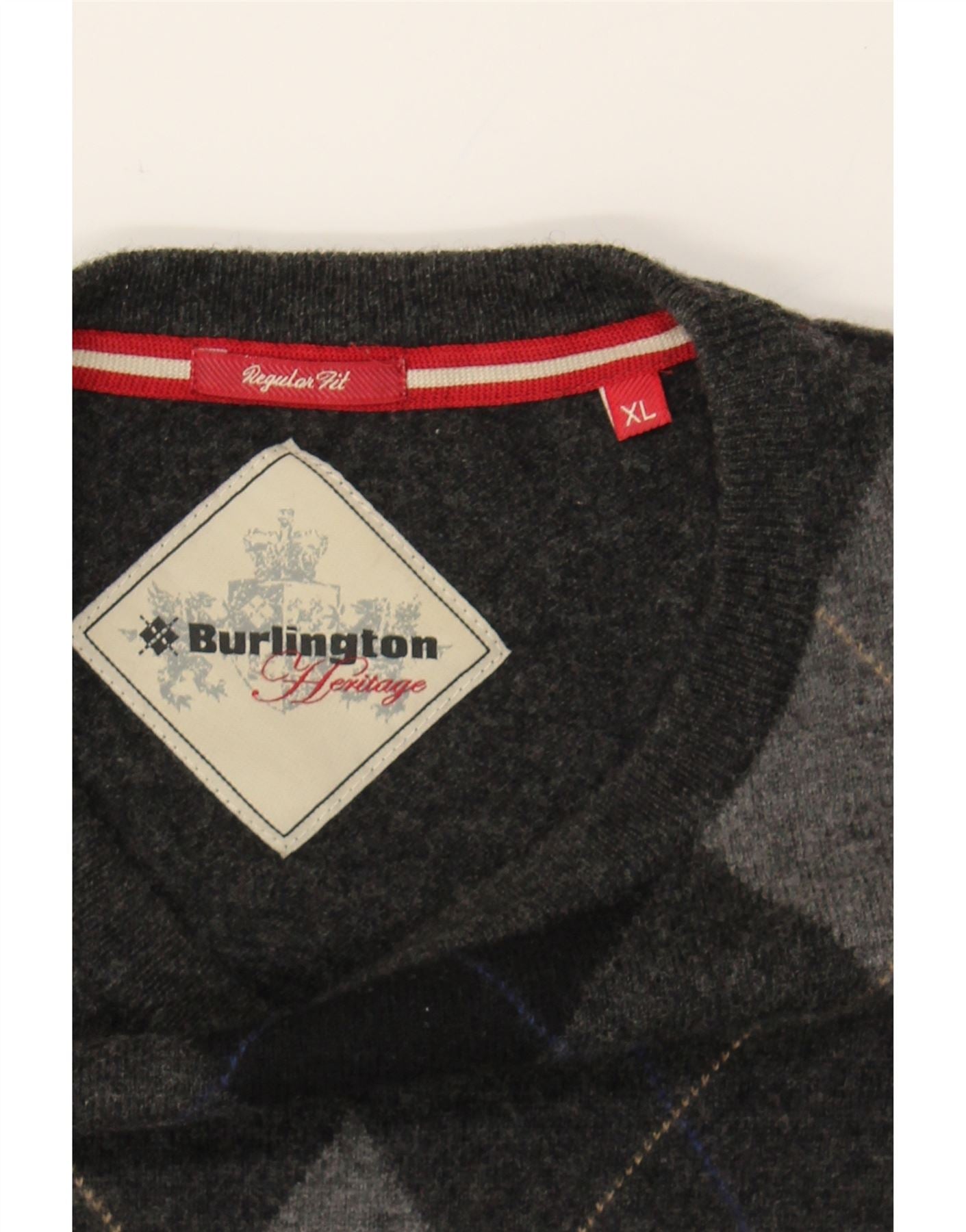 BURLINGTON Mens Heritage Crew Neck Jumper Sweater XL Grey Argyle/Diamond