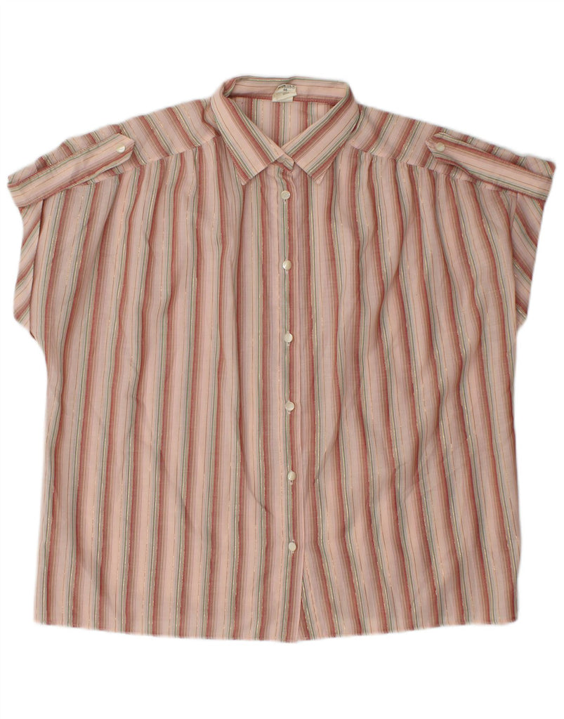C&A Womens Overshirt Short Sleeve Shirt EU 46 XL Pink Striped Polyester