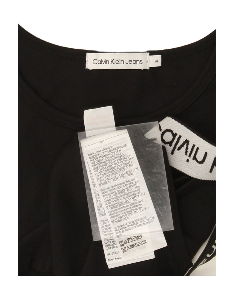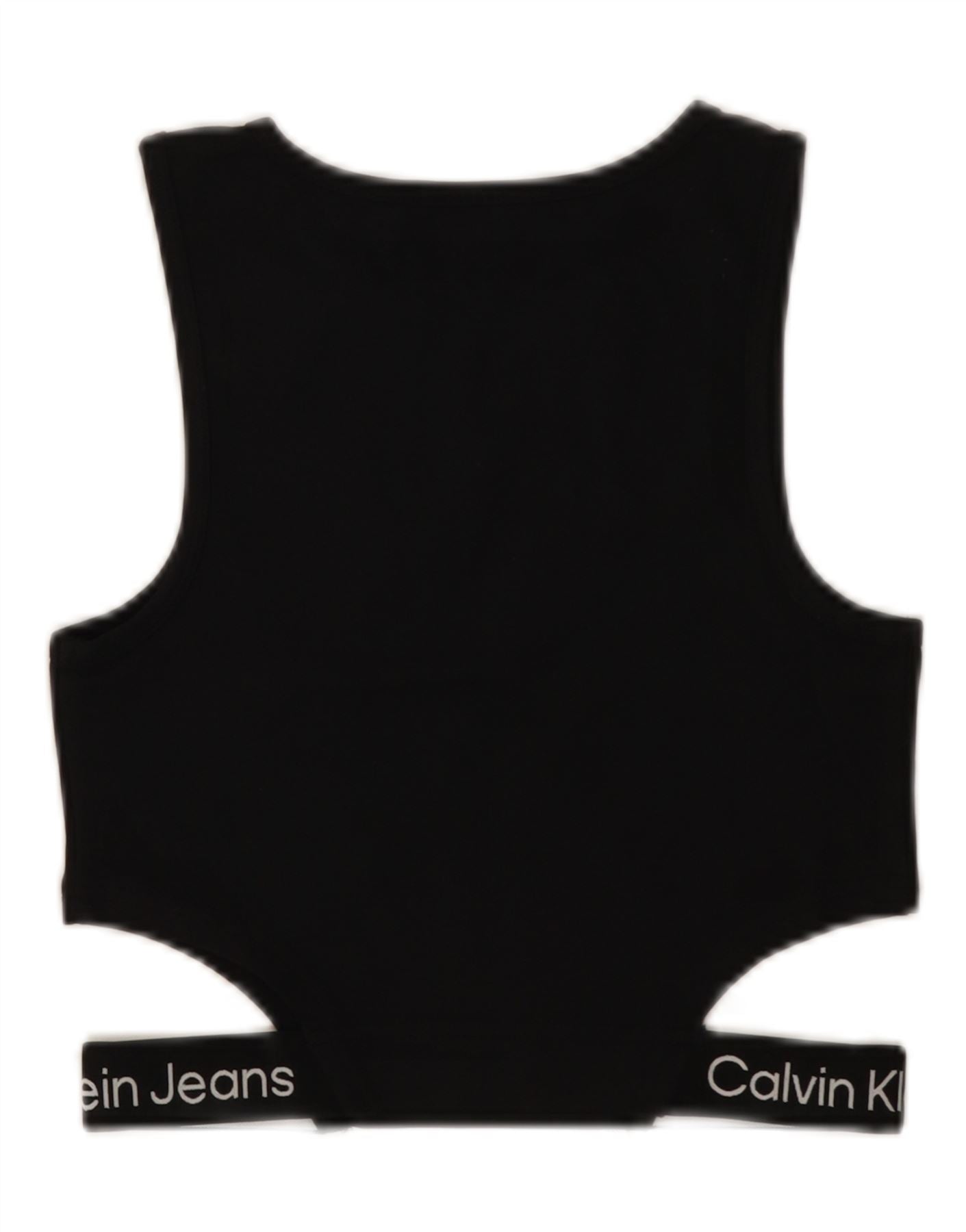 CALVIN KLEIN JEANS Girls Graphic Sport Bra Top 13-14 Years Black Viscose