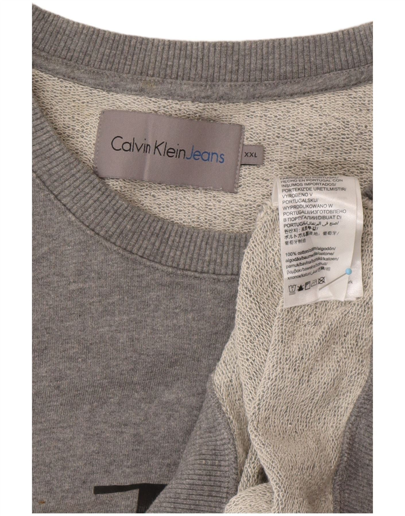 Męski sweter z grafiką CALVIN KLEIN JEANS, 2XL, szary, bawełniany
