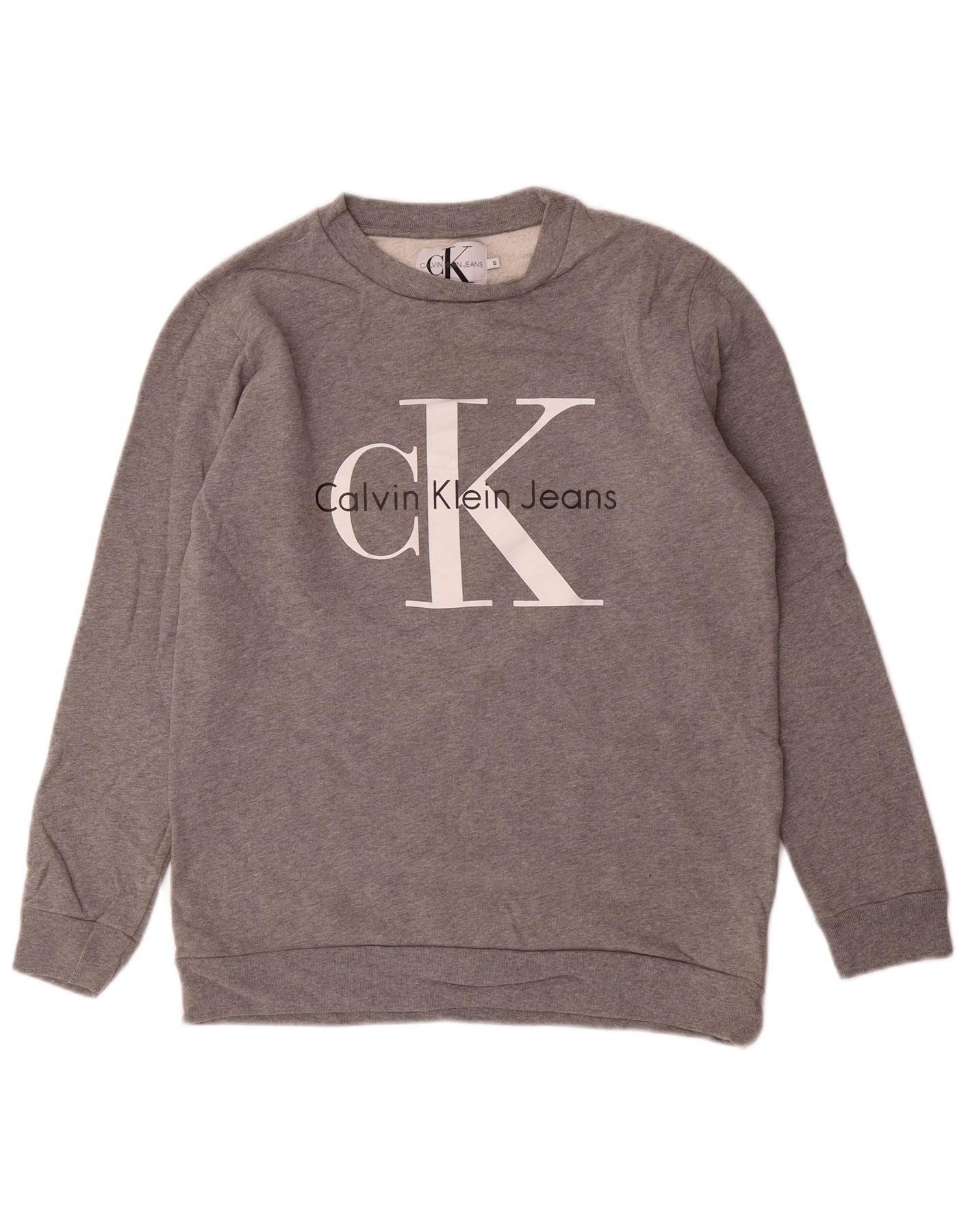 CALVIN KLEIN JEANS Męski sweter z grafiką, mały, szary, bawełniany