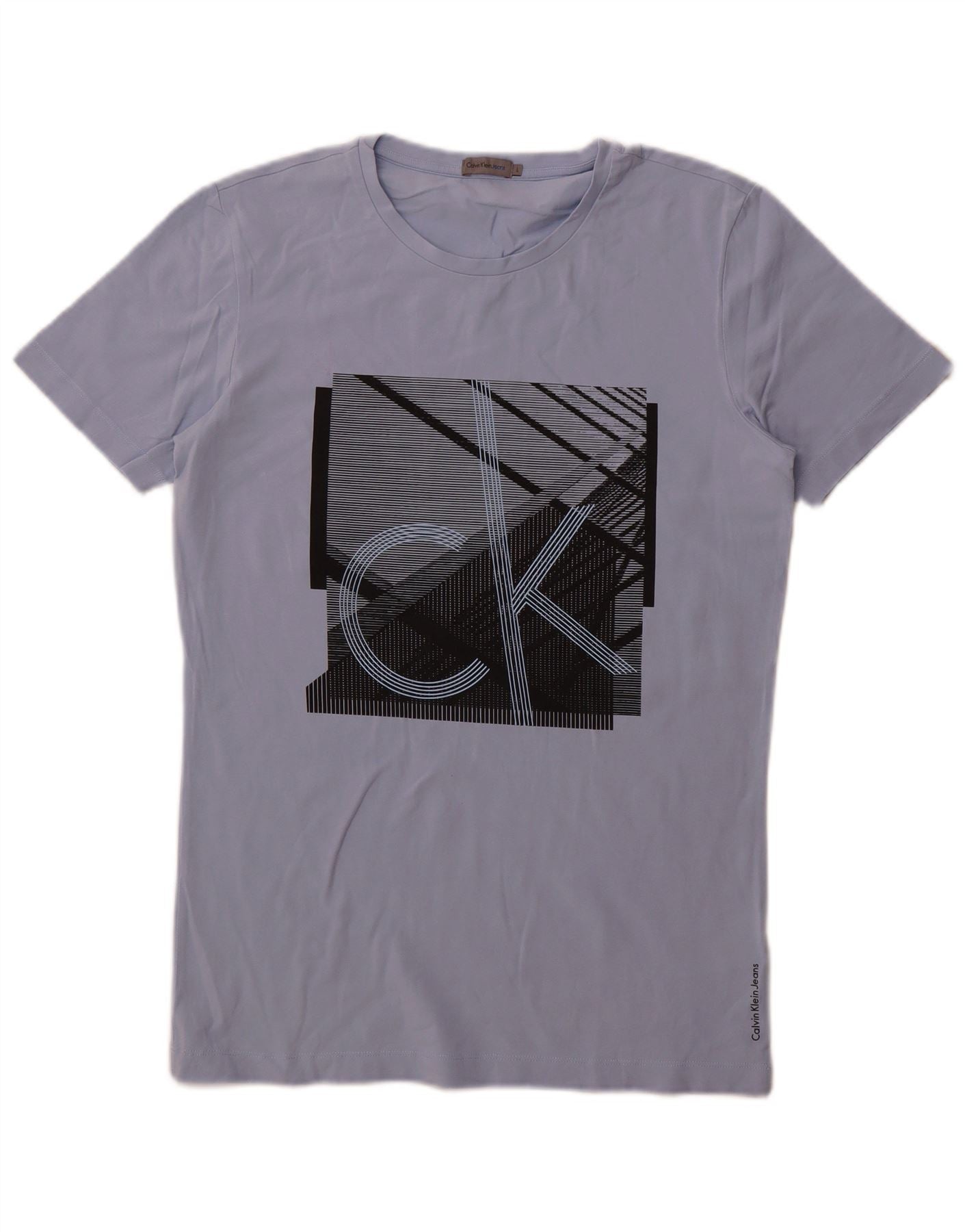 Męski T-shirt z grafiką Calvin Klein Jeans, duży, niebieski, bawełniany