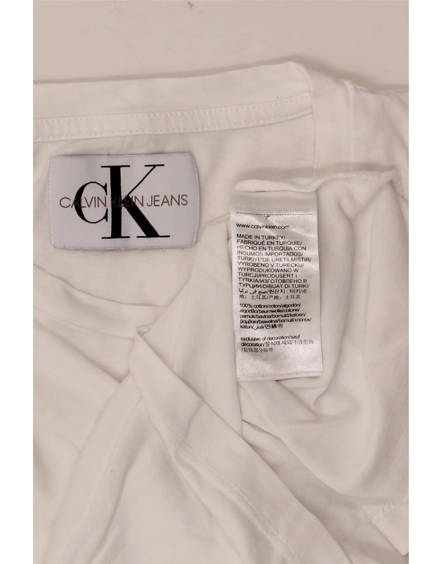 CALVIN KLEIN JEANS Męski T-shirt z grafiką, mały, biały, bawełniany
