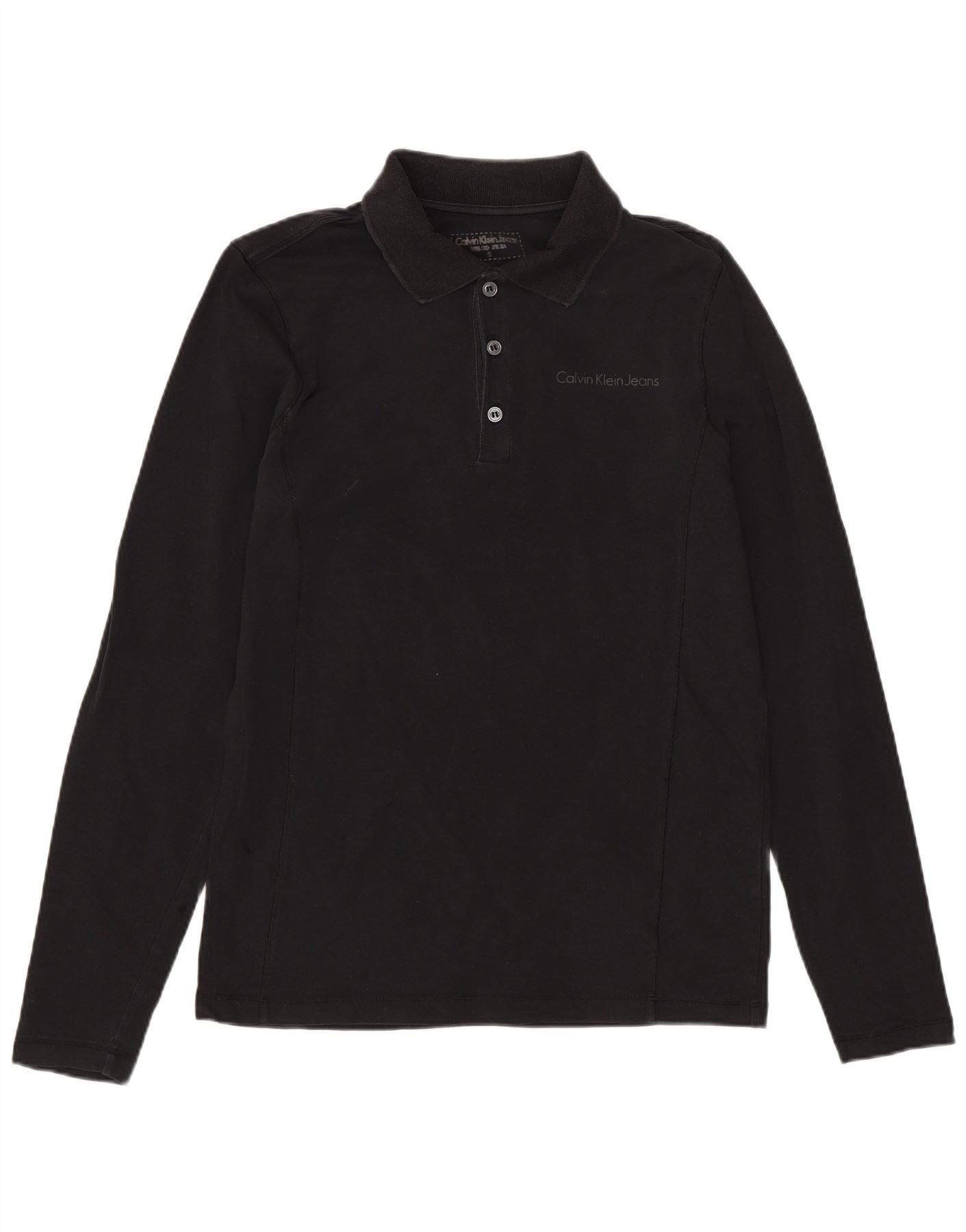 Męska koszulka polo z długim rękawem CALVIN KLEIN JEANS, mała, czarna, bawełniana
