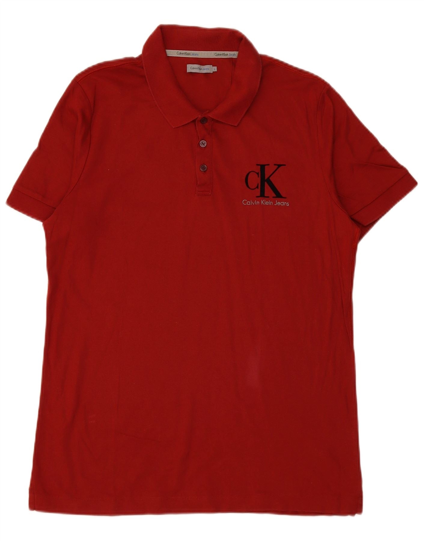 CALVIN KLEIN JEANS Mens Polo Shirt Large Burgundy Cotton