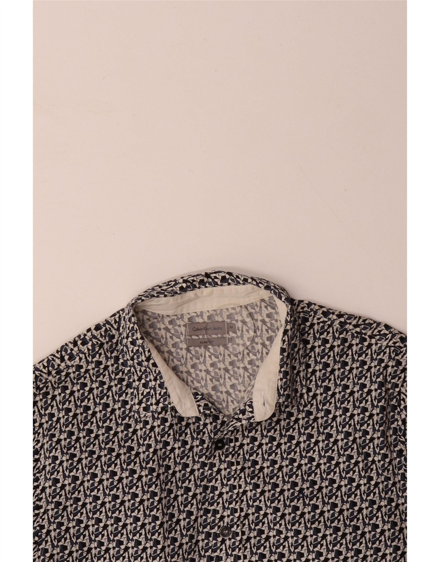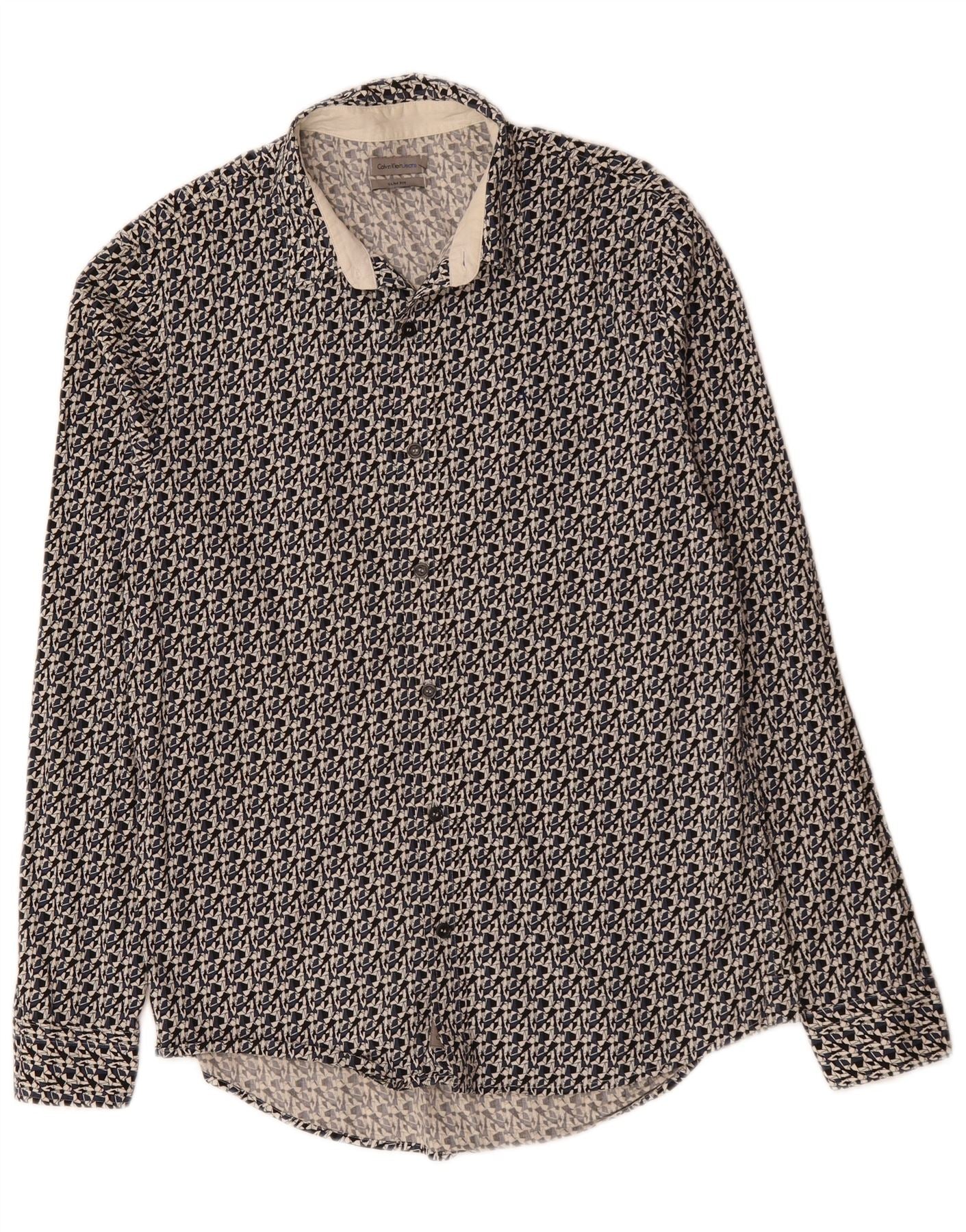 CALVIN KLEIN JEANS Męska koszula o dopasowanym kroju, średniej wielkości, czarna, z geometrycznej bawełny