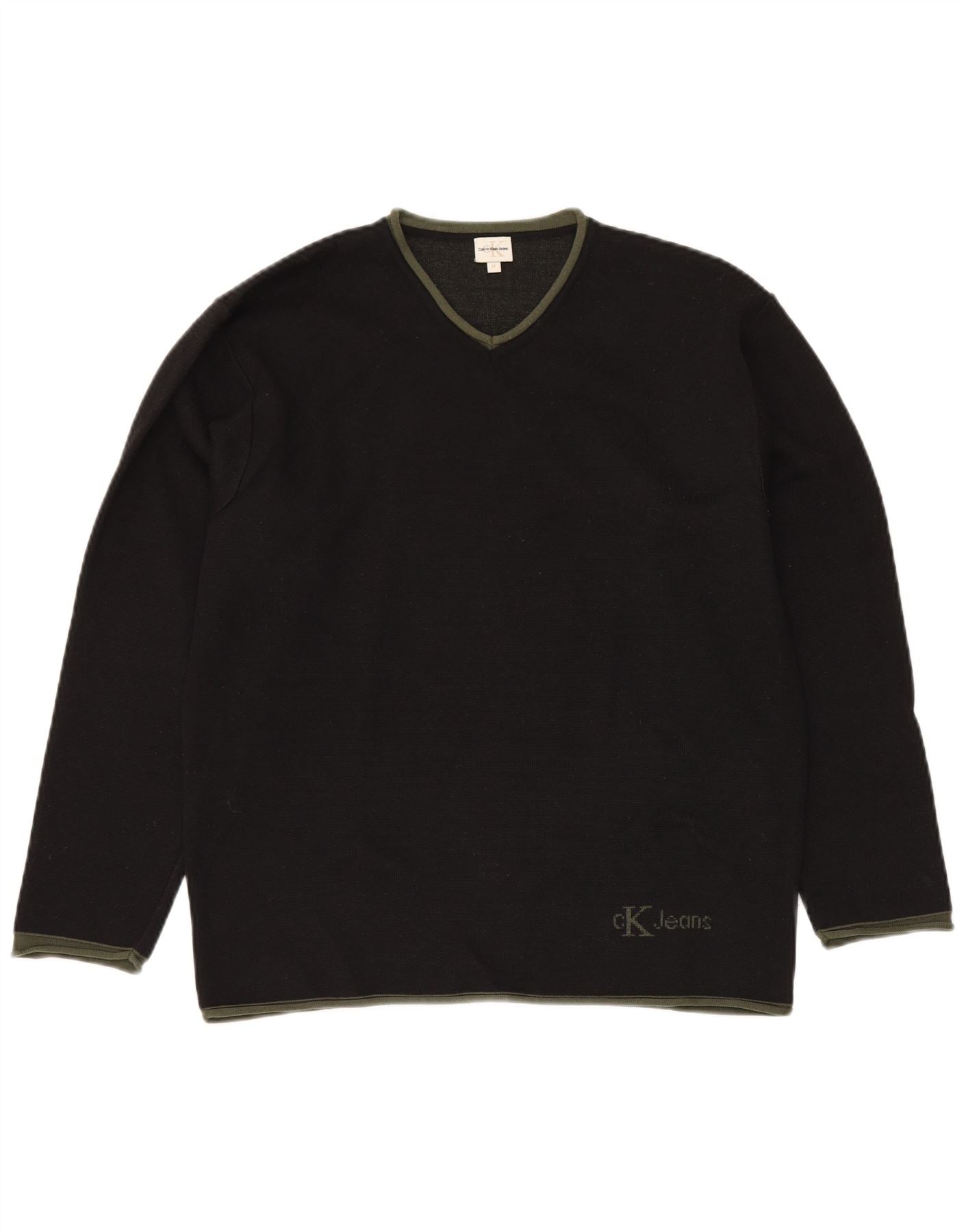 CALVIN KLEIN JEANS Męski sweter z dekoltem w kształcie litery V, średniej wielkości czarna wełna