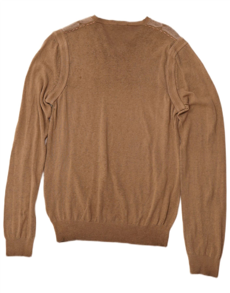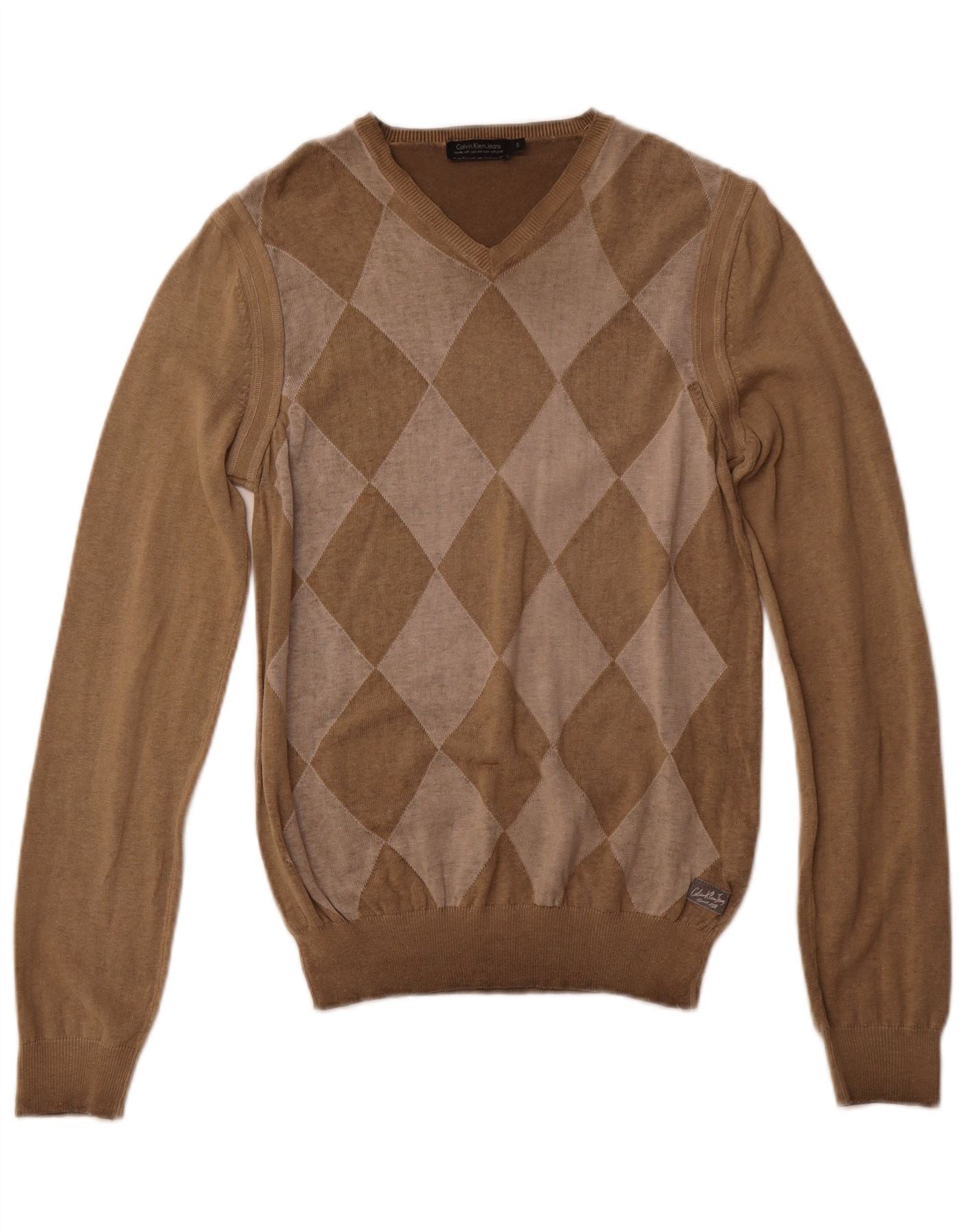 CALVIN KLEIN JEANS Męski sweter z dekoltem w kształcie litery V, mały, brązowy Argyle/Diament