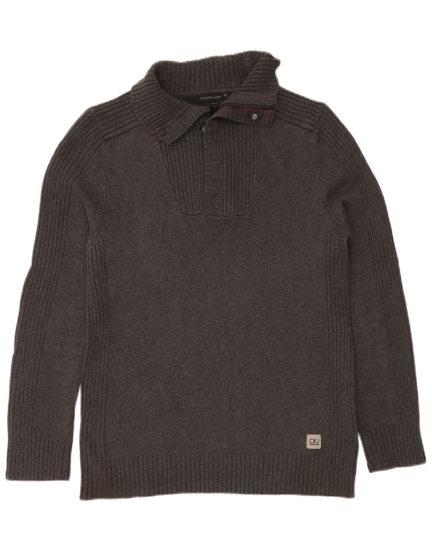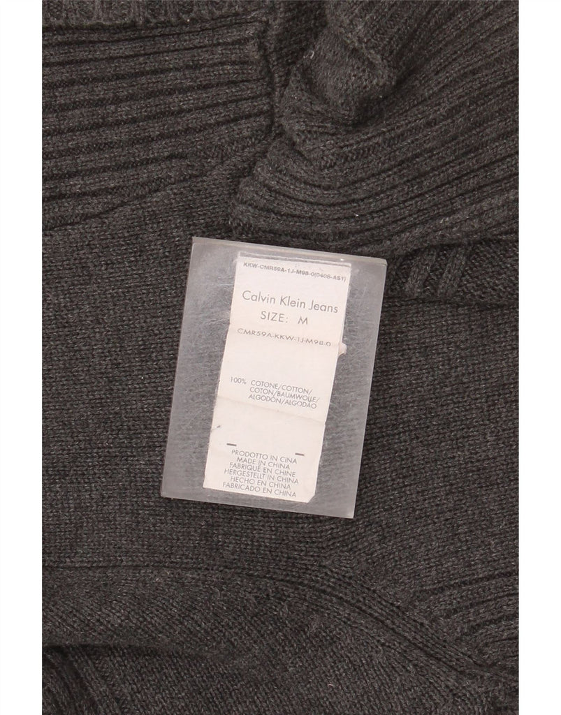 CALVIN KLEIN JEANS Mens Zip Neck Jumper Sweater Medium Grey Cotton
