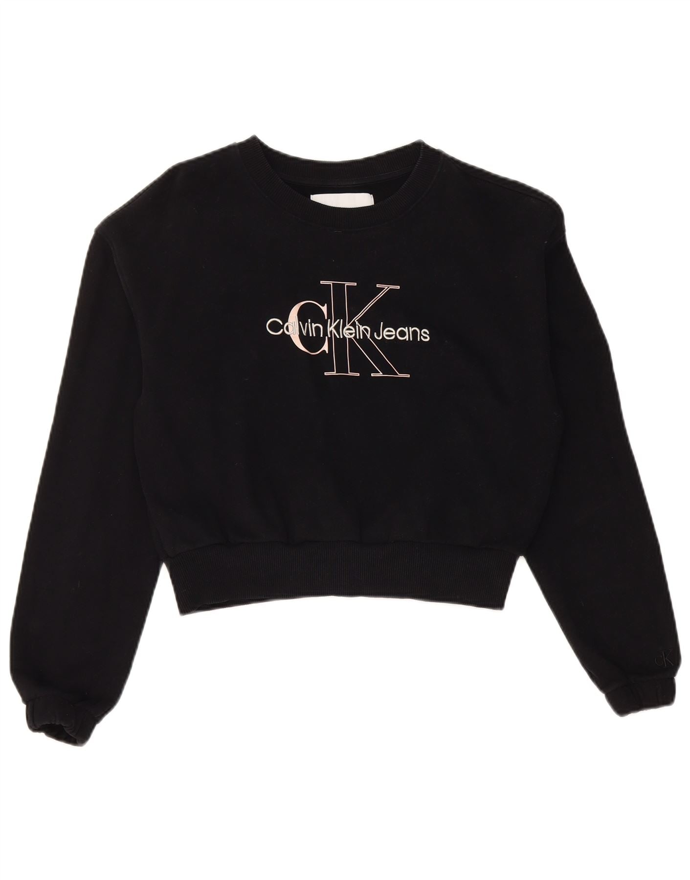 CALVIN KLEIN JEANS Damski sweter typu Crop Bluza UK 10 Small Black