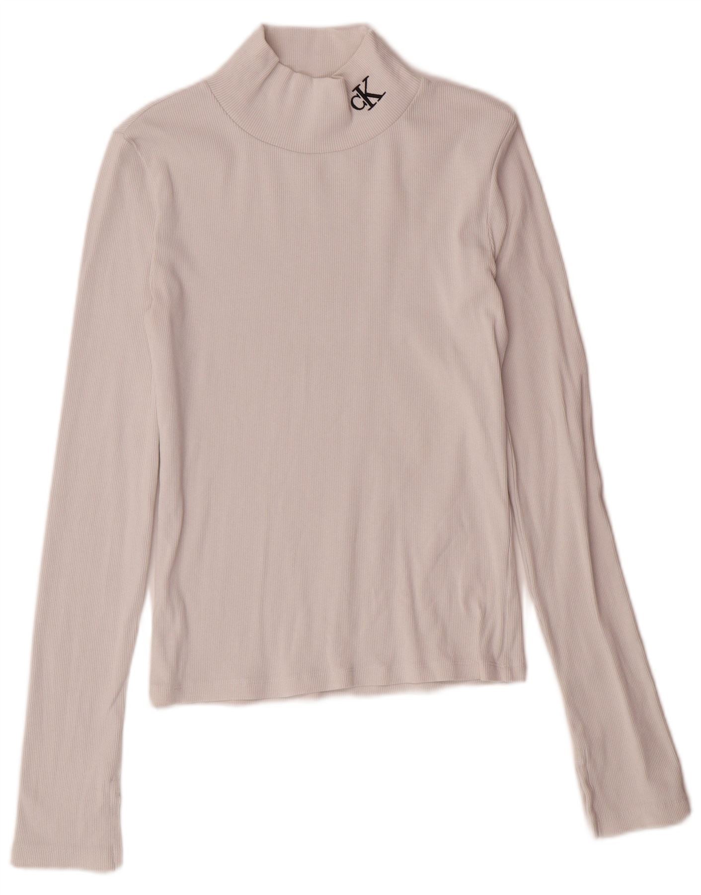 CALVIN KLEIN JEANS Damski krótki top z długim rękawem, UK 12, średni biały