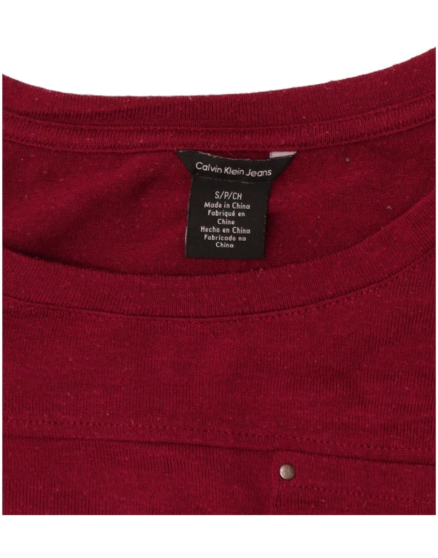 CALVIN KLEIN JEANS Damski top z rękawem 3/4, UK 10, mały, bordowy poliester