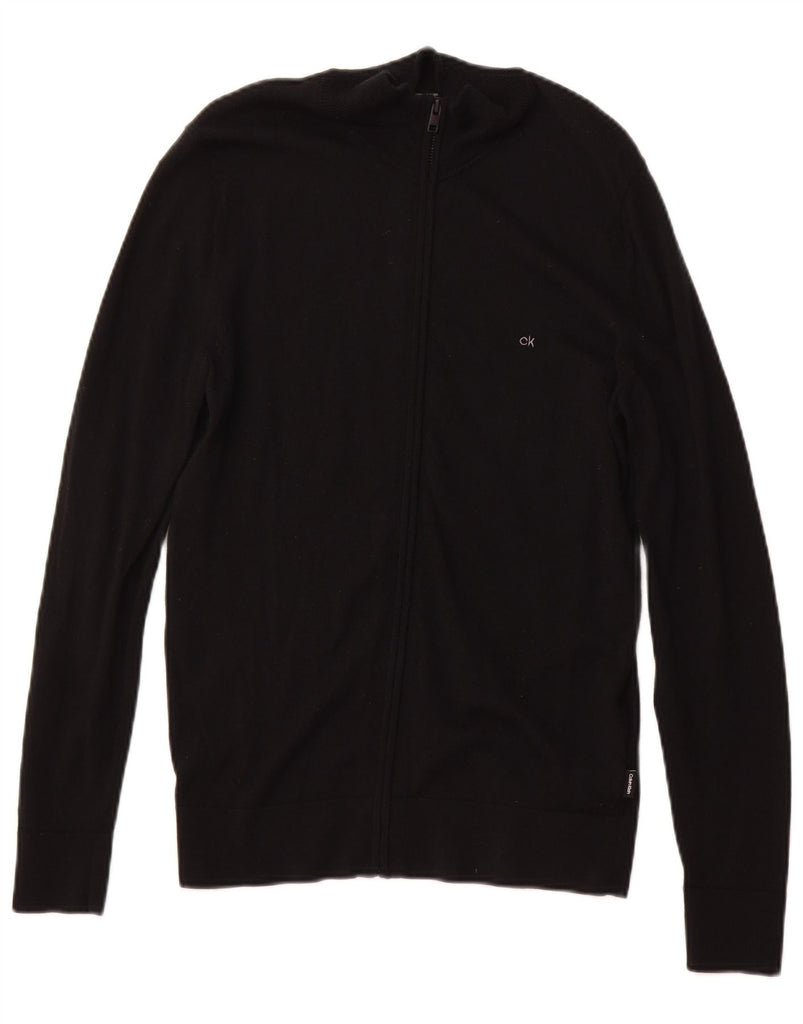 CALVIN KLEIN Męski sweter rozpinany, mały, czarny, wełniany