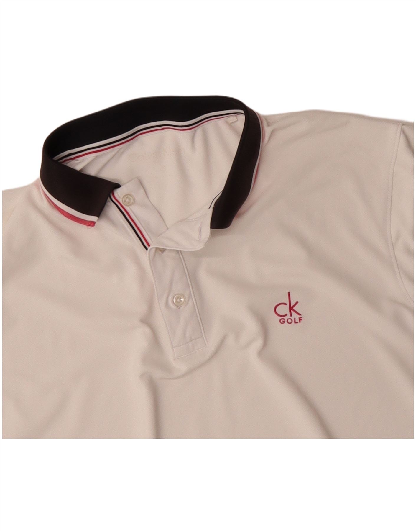 Męska koszulka polo do golfa CALVIN KLEIN, duża, biała, z poliestru w blokach kolorów