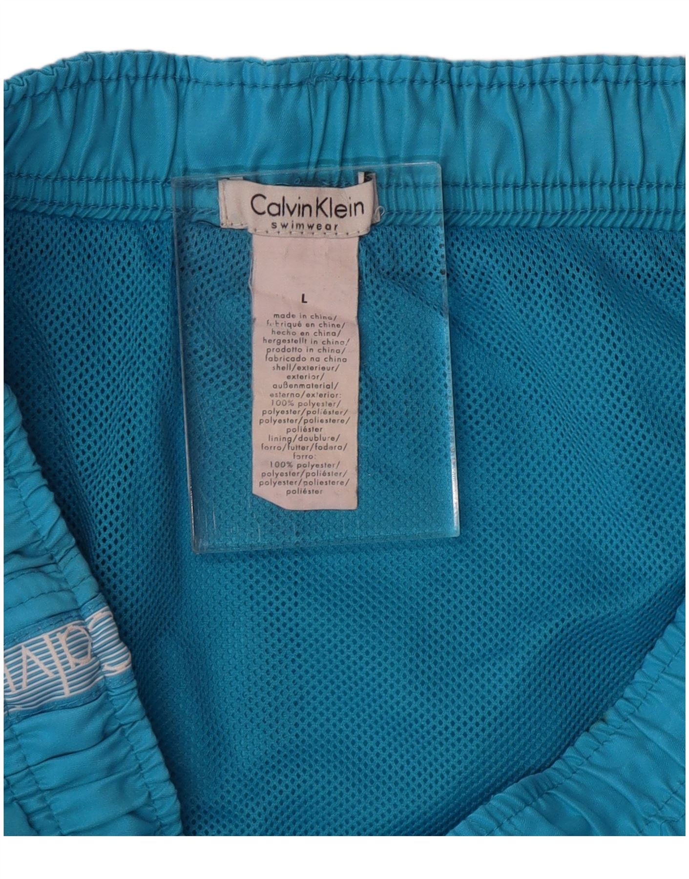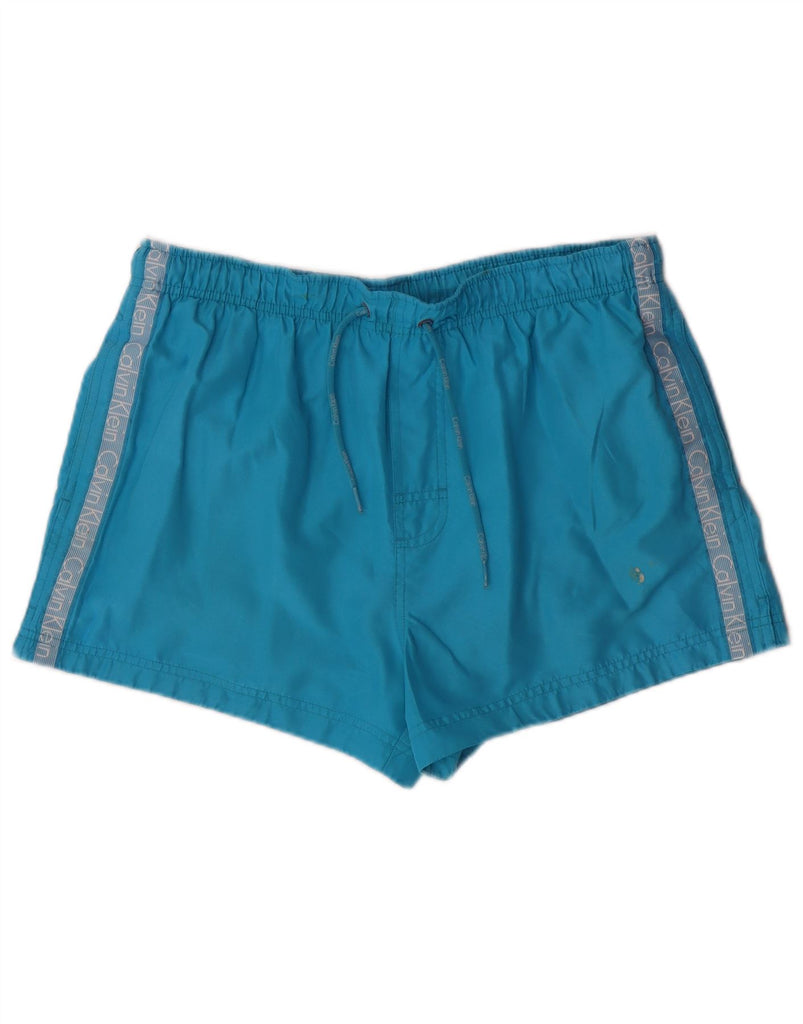 Męskie spodenki kąpielowe CALVIN KLEIN z grafiką, duże, niebieskie, poliestrowe